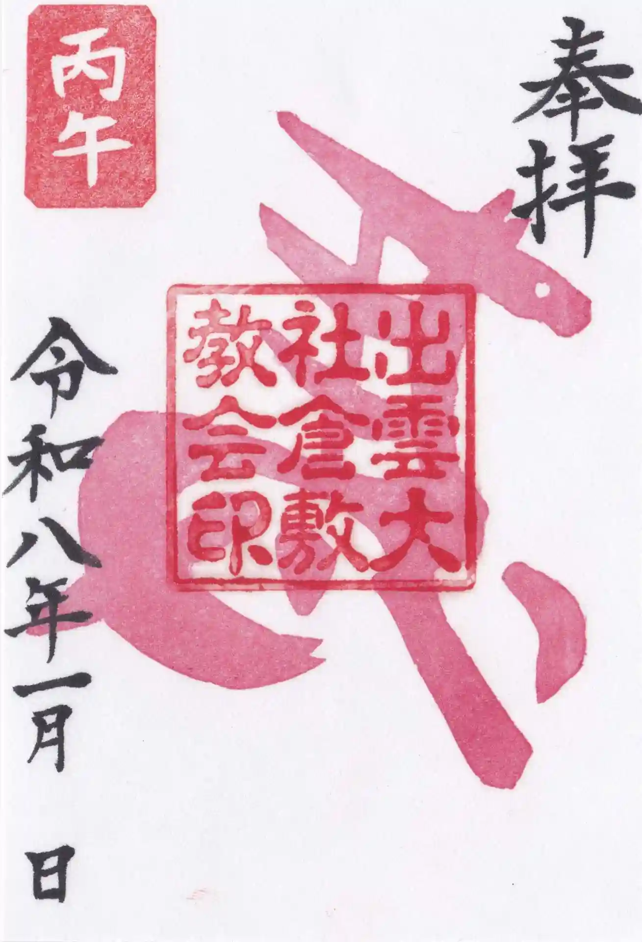 1月限定で丙午御朱印を頒布致します(玉串料300円)。