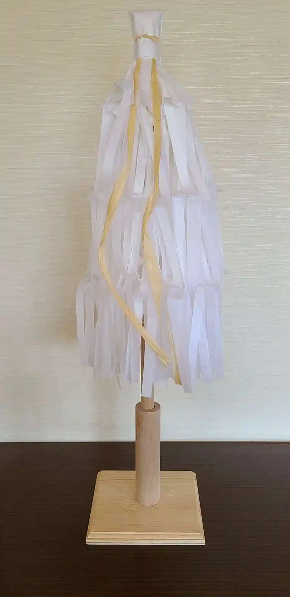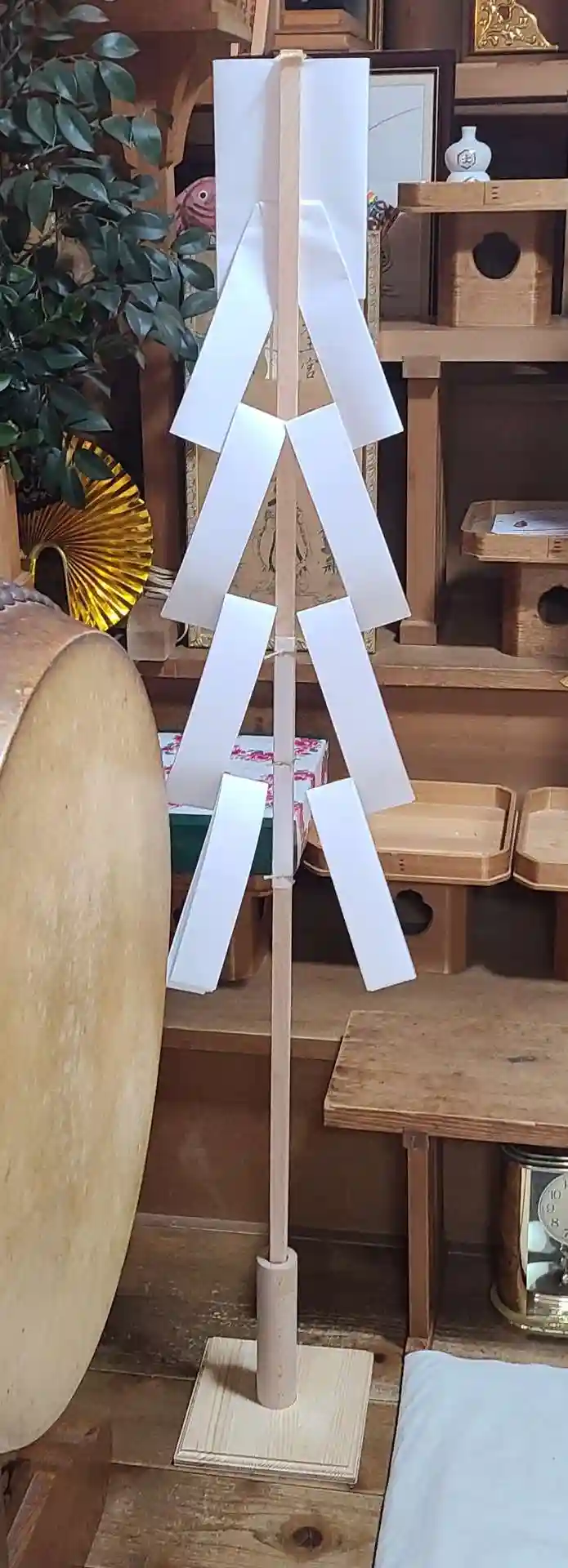 1階の御神前に奉幣の御幣を新たに作製致しました。ホームセンターで購入した木材を組み合わせて土台含め…
