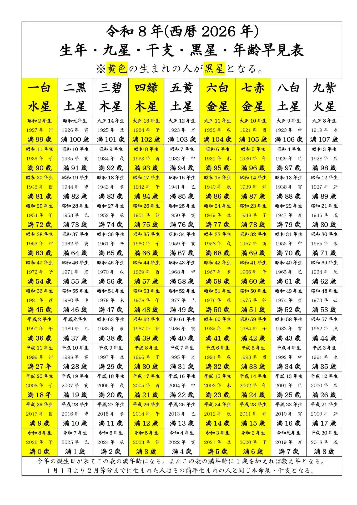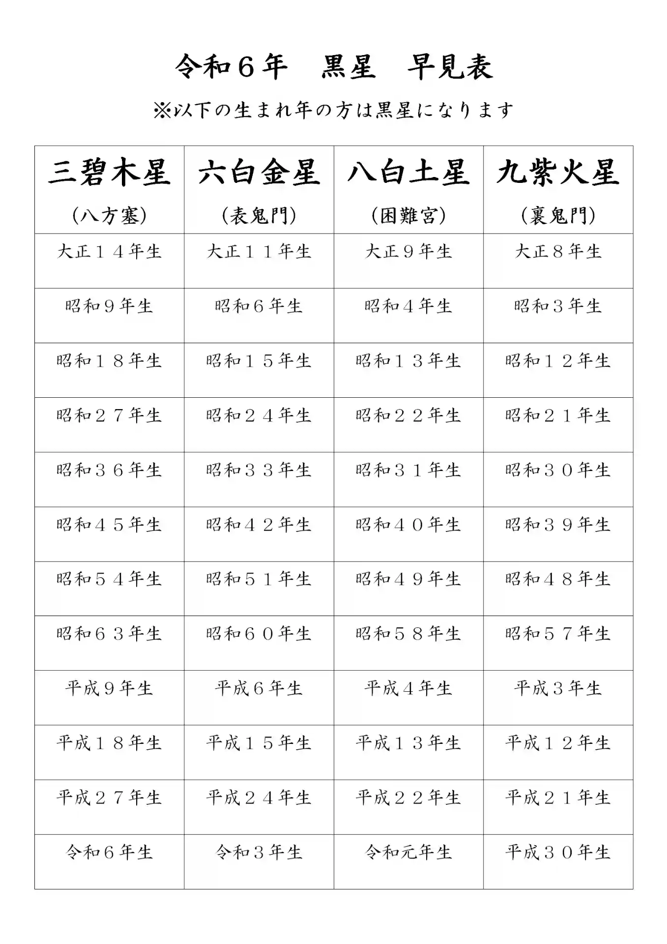 来年黒星の方が一目で分かる表を作成致しました。