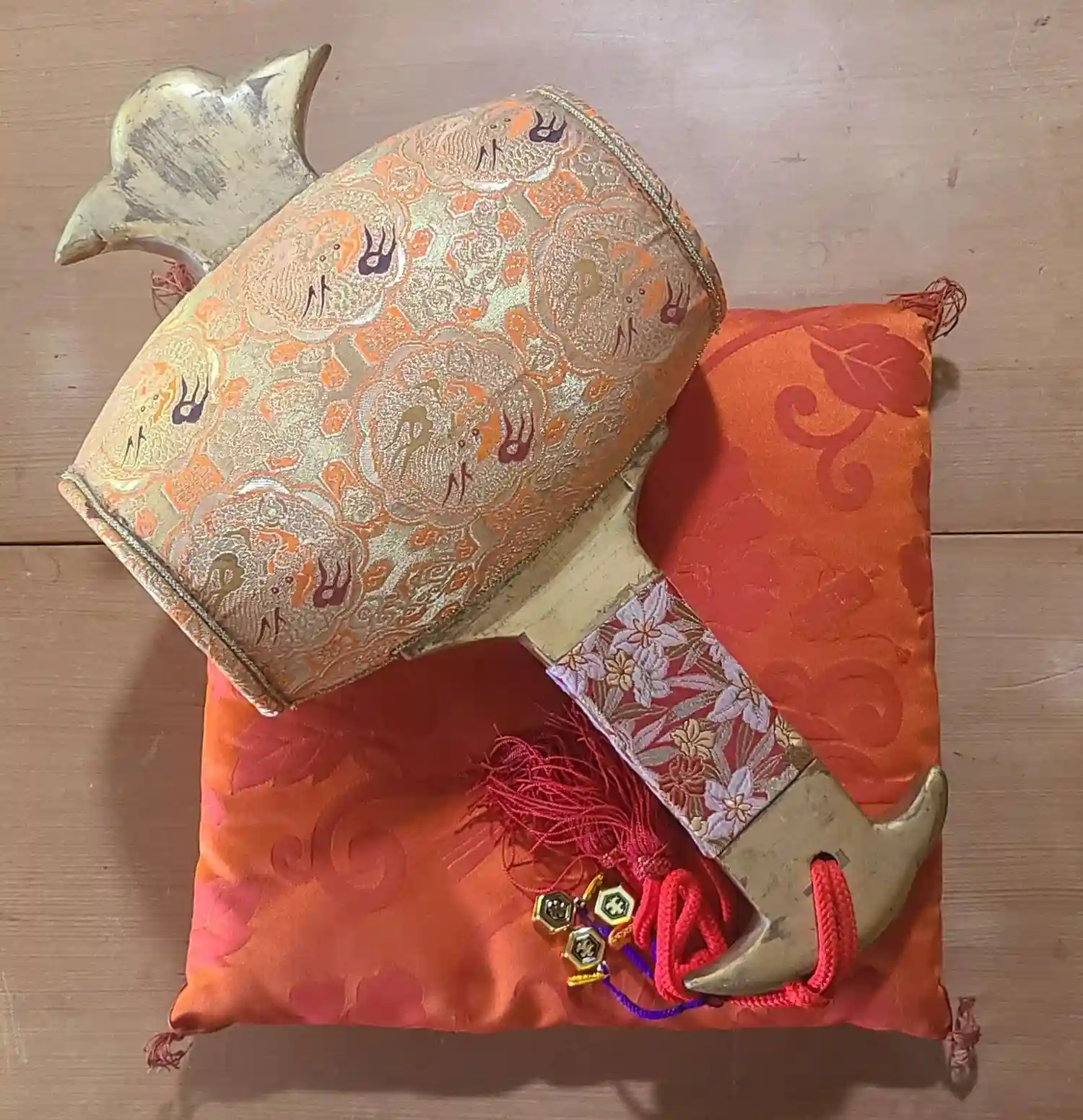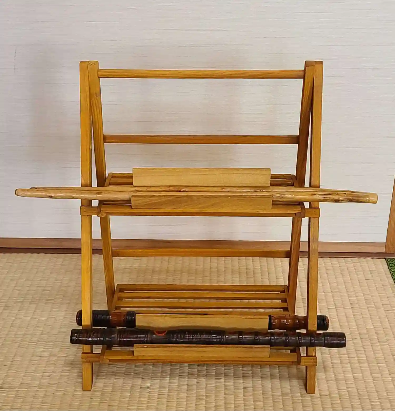 今まで置くところがなかった龍笛・太鼓バチですが、この度それらを置く台を作製致しました。細かいところ…