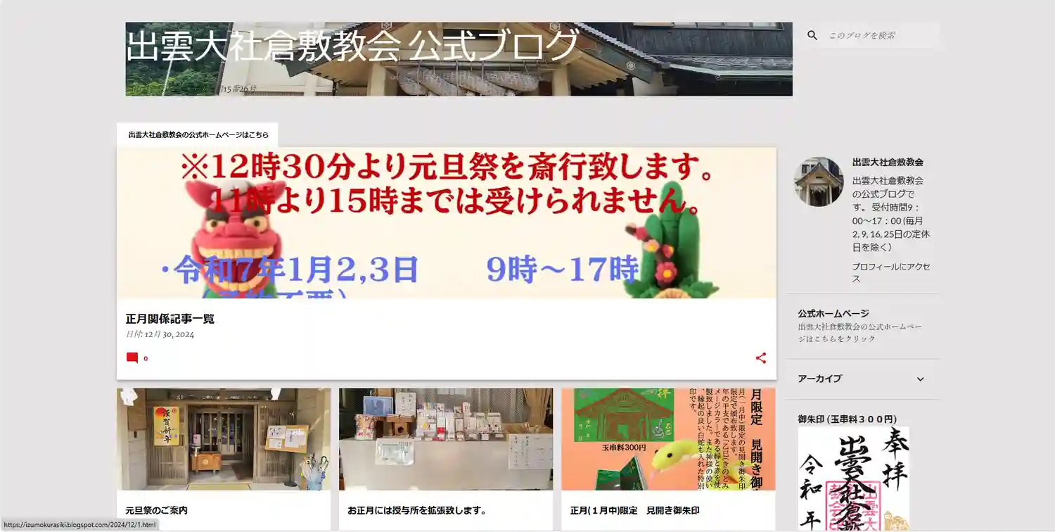 今まで投稿した正月関係の案内を公式ブログにて1つの記事にまとめましたのでご覧ください。