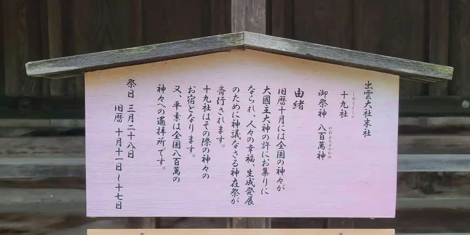 本日11月10日は島根県の出雲大社にて神迎祭が斎行される日です。それにちなんで「十九社」の写真を投…