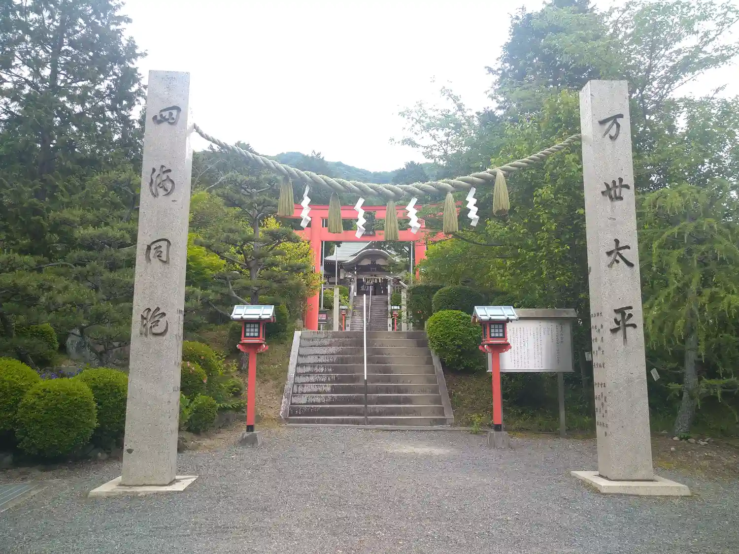 鳥居をくぐると拝殿へ続く階段が見えます。