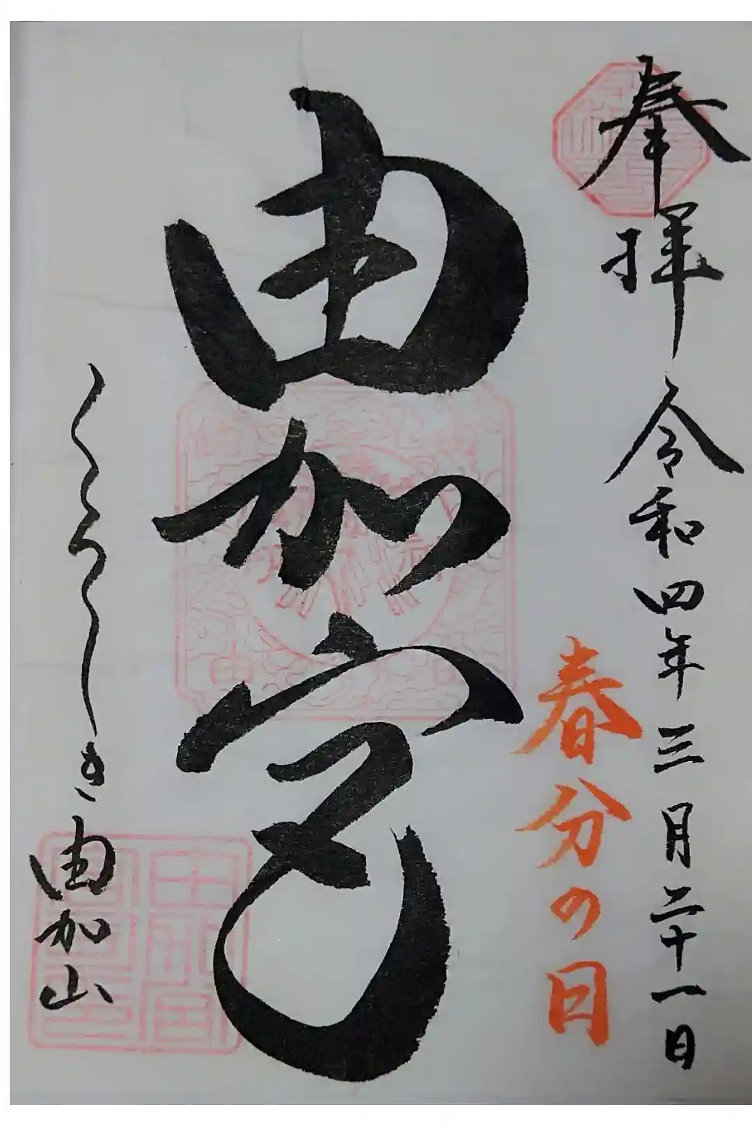 【令和四年三月二十一日参拝】由加神社本宮の御朱印