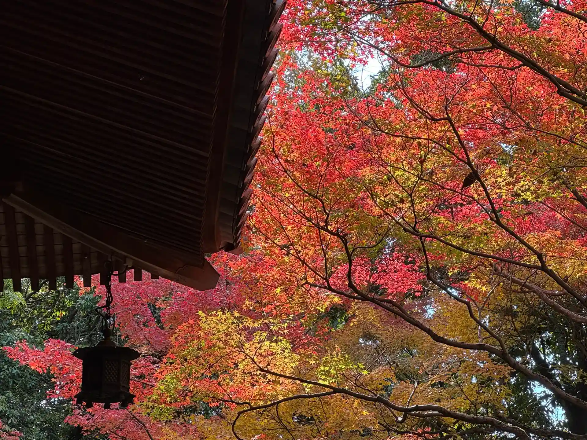 ちょうど堂宇を覆うように紅葉が綺麗に色づいておりました。