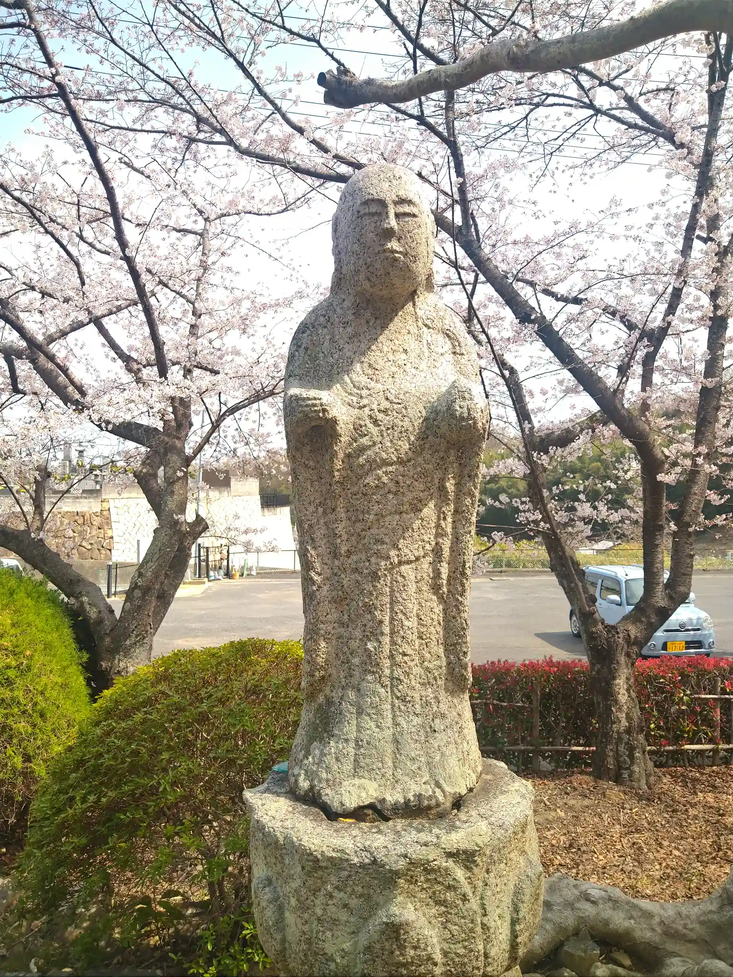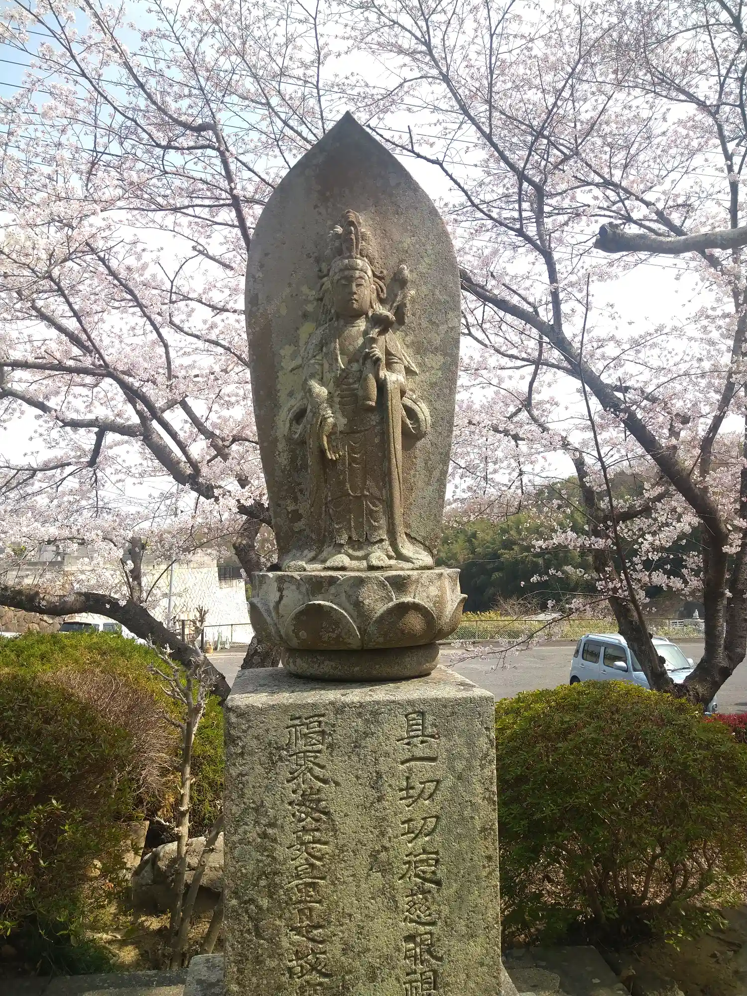 観音様です。 前回撮った写真は、バックが満開の桜でしたが、今は葉桜です。