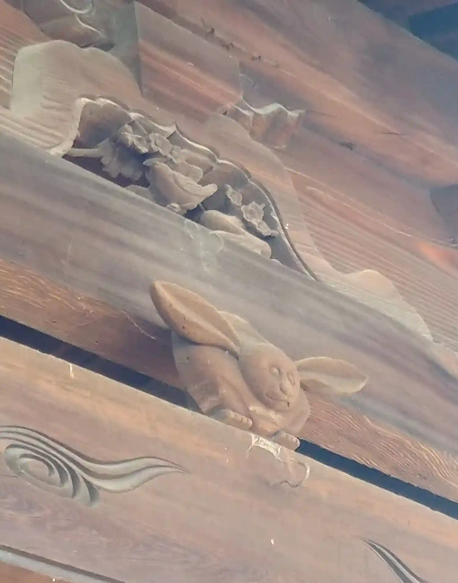 随神門の真ん中の上の彫刻に、御朱印帳のモデルになったうさぎさんがいます。