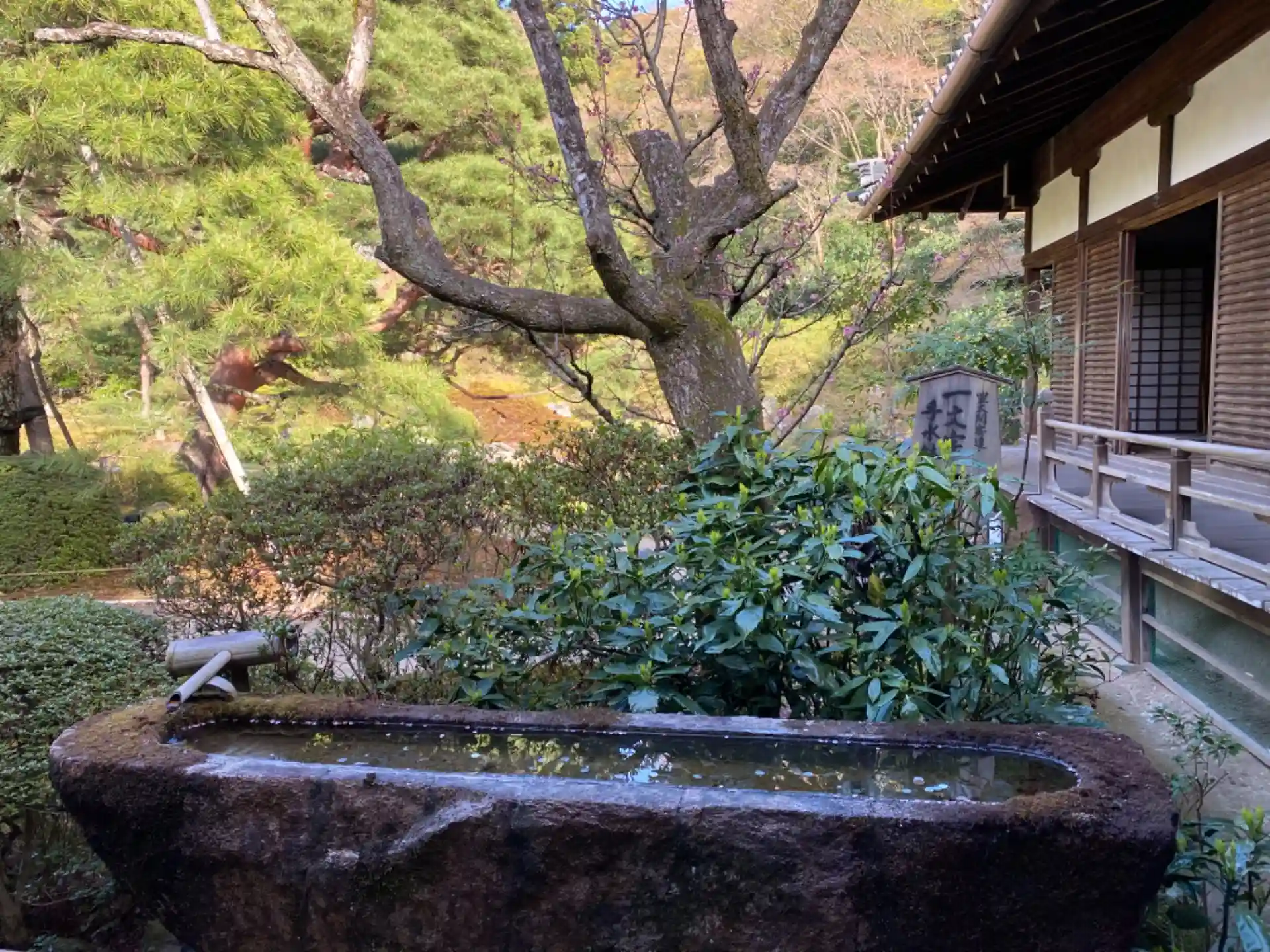 相阿弥の庭の端には一文字手水鉢が置かれていました🧐