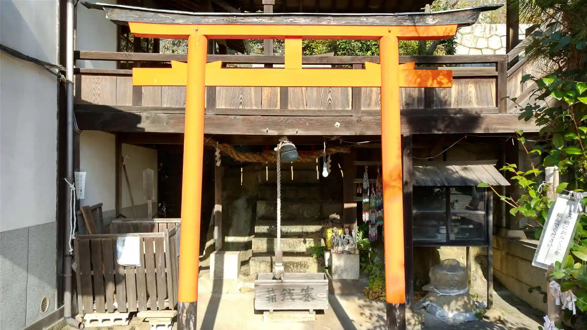 回廊奥にある花本神社。頭の病気によいとされていたので、頭が良くなるように御参りしました。