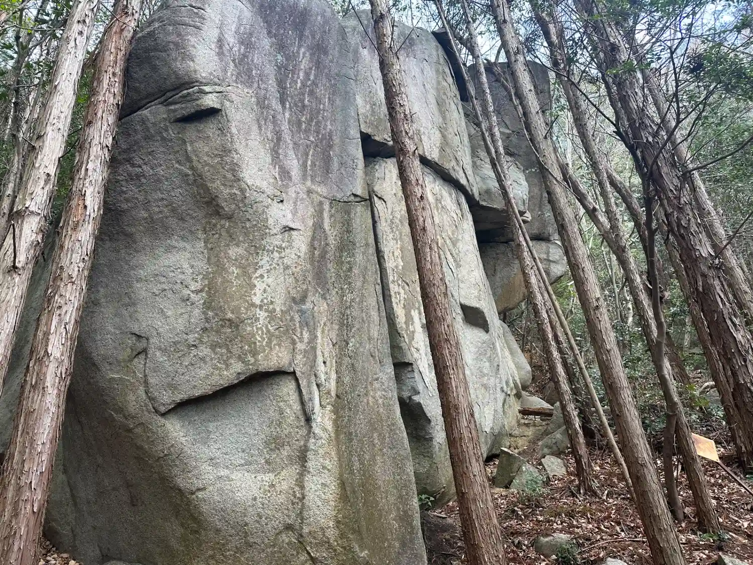 《注連柱》 この反対側の直線上に参道があるのかと思いきやガッツリ絶壁…そりゃ鳥居も遠くなるわ。