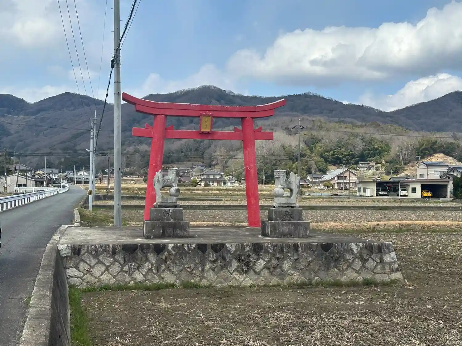 恐らくこの場所が遥拝所を兼ねていたんだと思います。写真で見ると多分鳥居の左手の丘に神社があります。