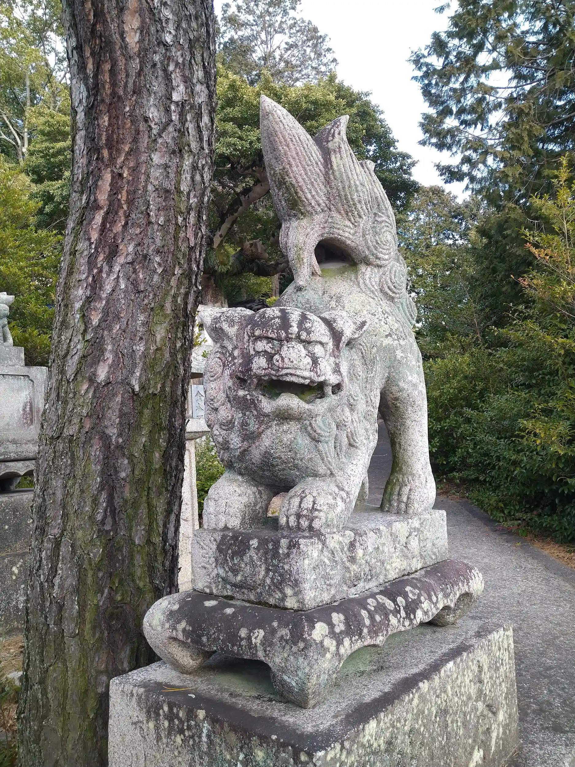 階段左手奥にいる吽形の狛犬さん