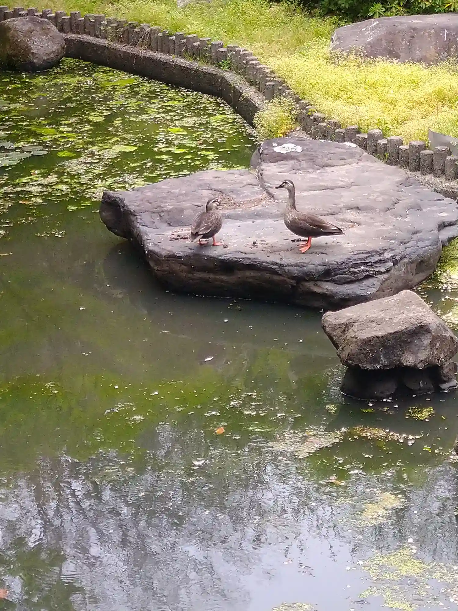 右側の池で、カモさんカップルがデート中でした🦆💕🦆