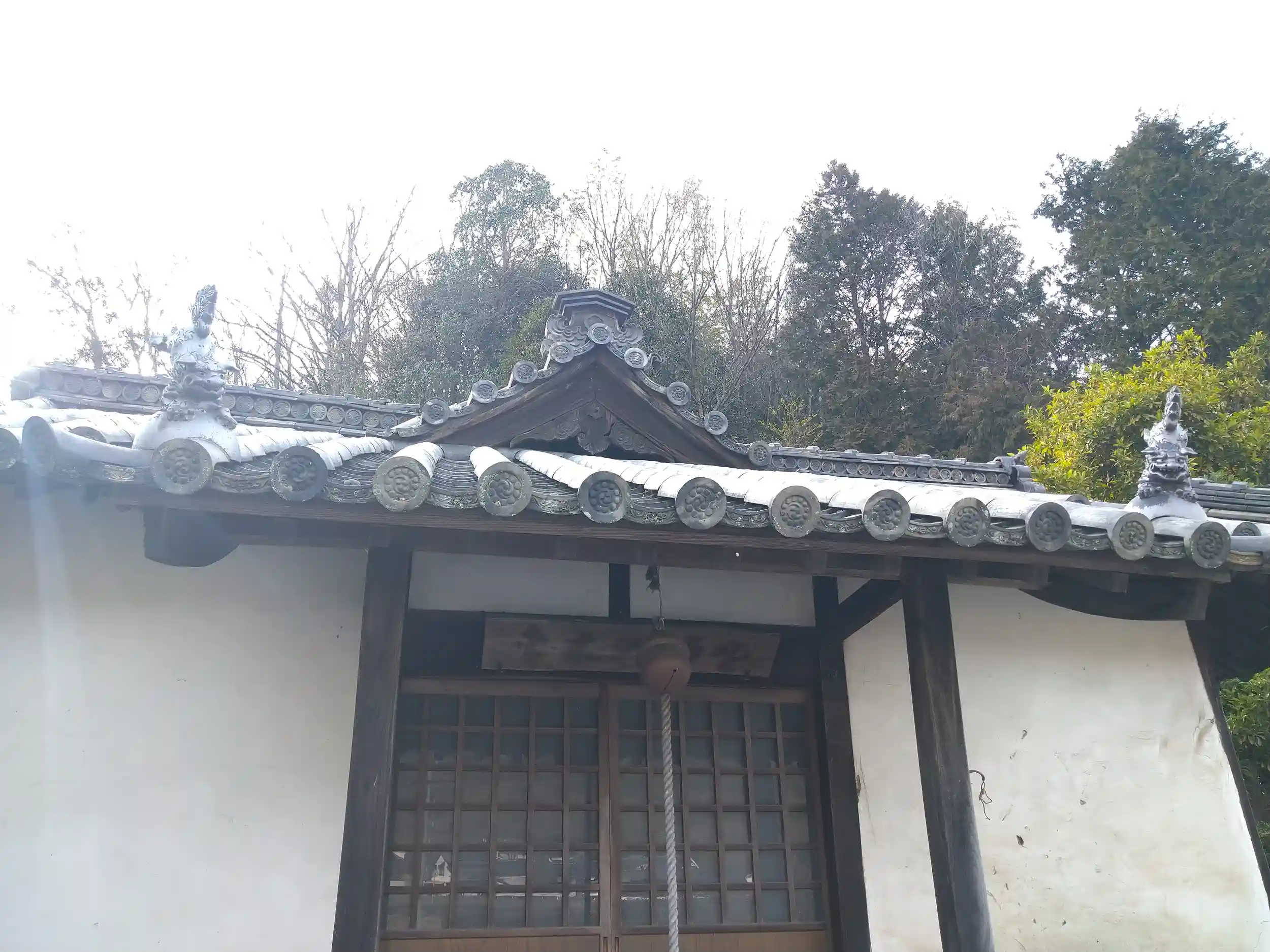 屋根の上に、狛犬さん