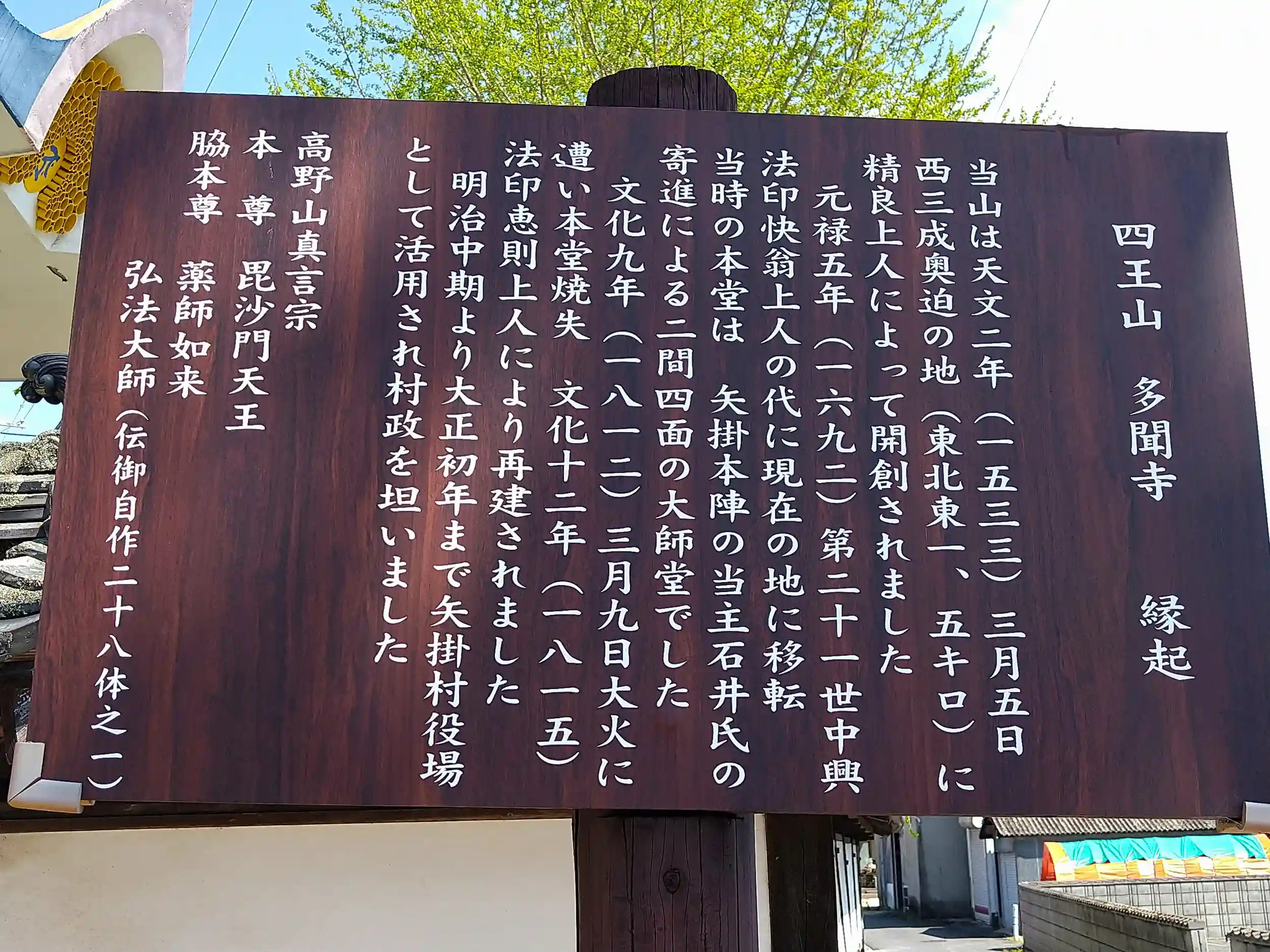 四王山 多聞寺 縁起