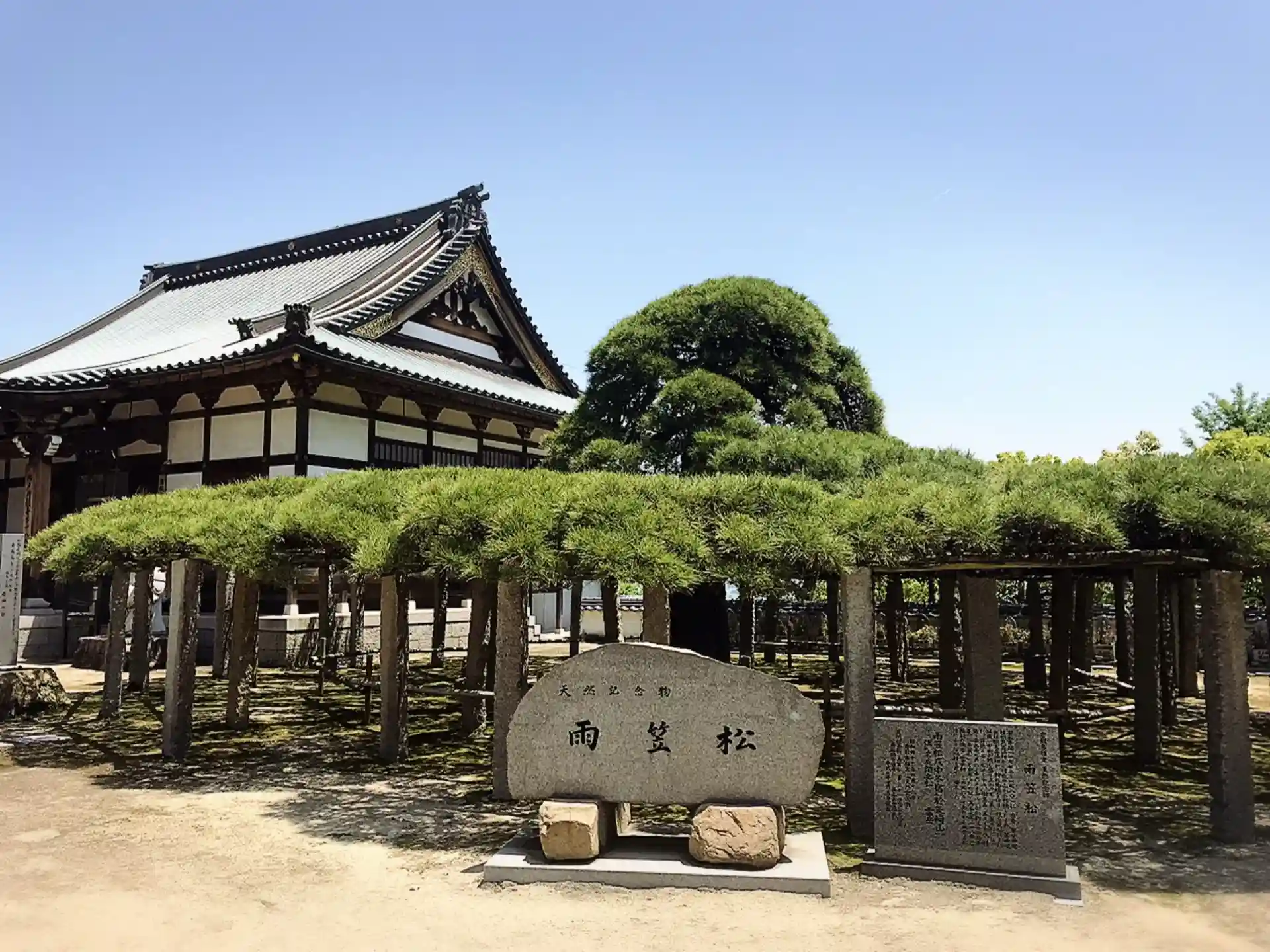 一本の松の枝が傘のように16mにわたり広がる「雨笠の松」