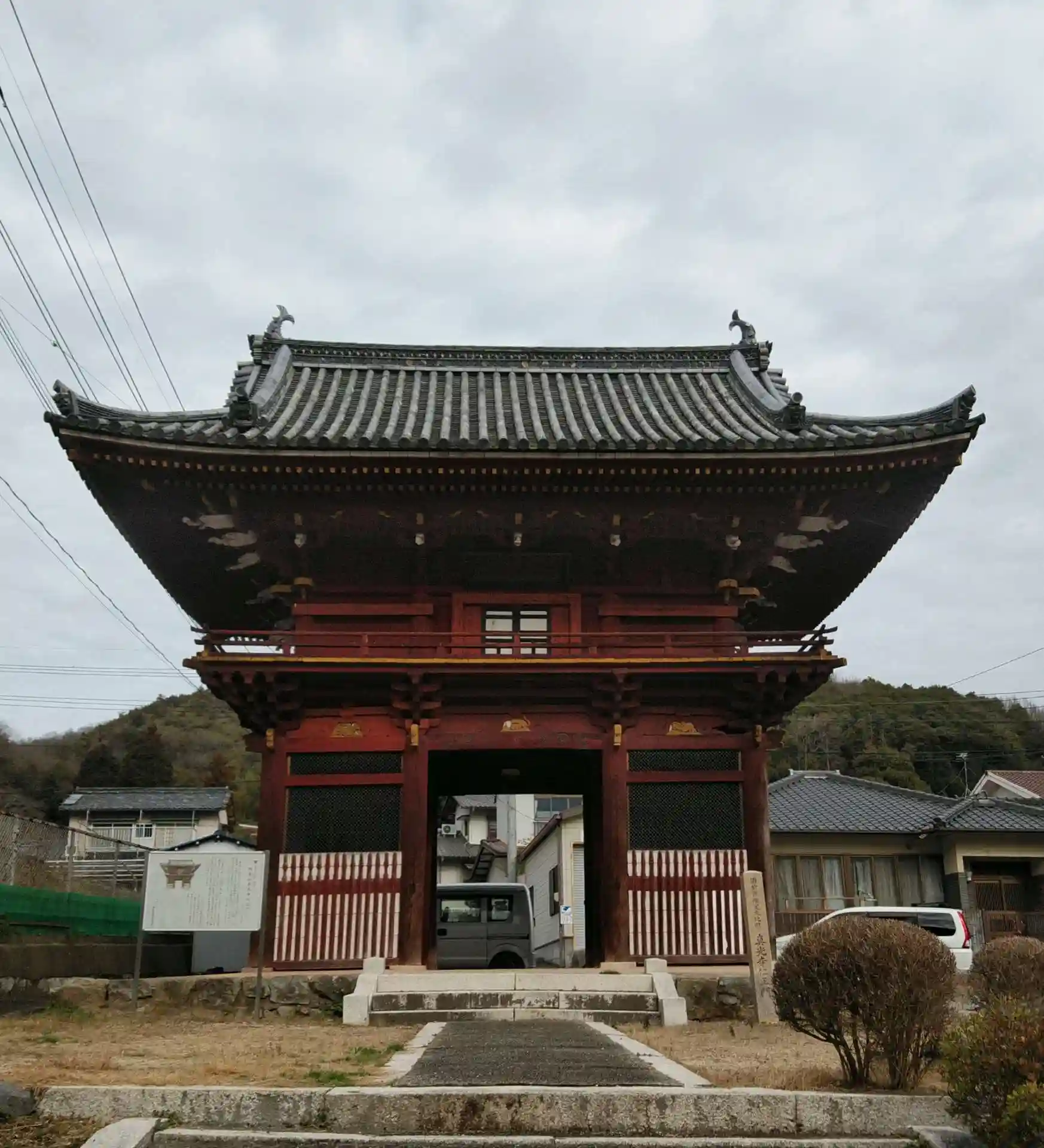 境内を昭和30年代に赤穂線と国道2号線が横切ることとなり、山門から本堂へはこれらを跨ぐ歩道橋を渡ります。