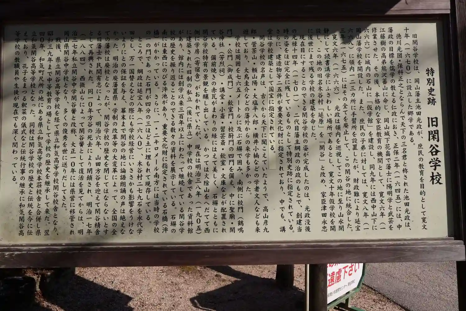 1686年に備前藩主の池田光政が寛文年間学校(閑谷学校)を興し…