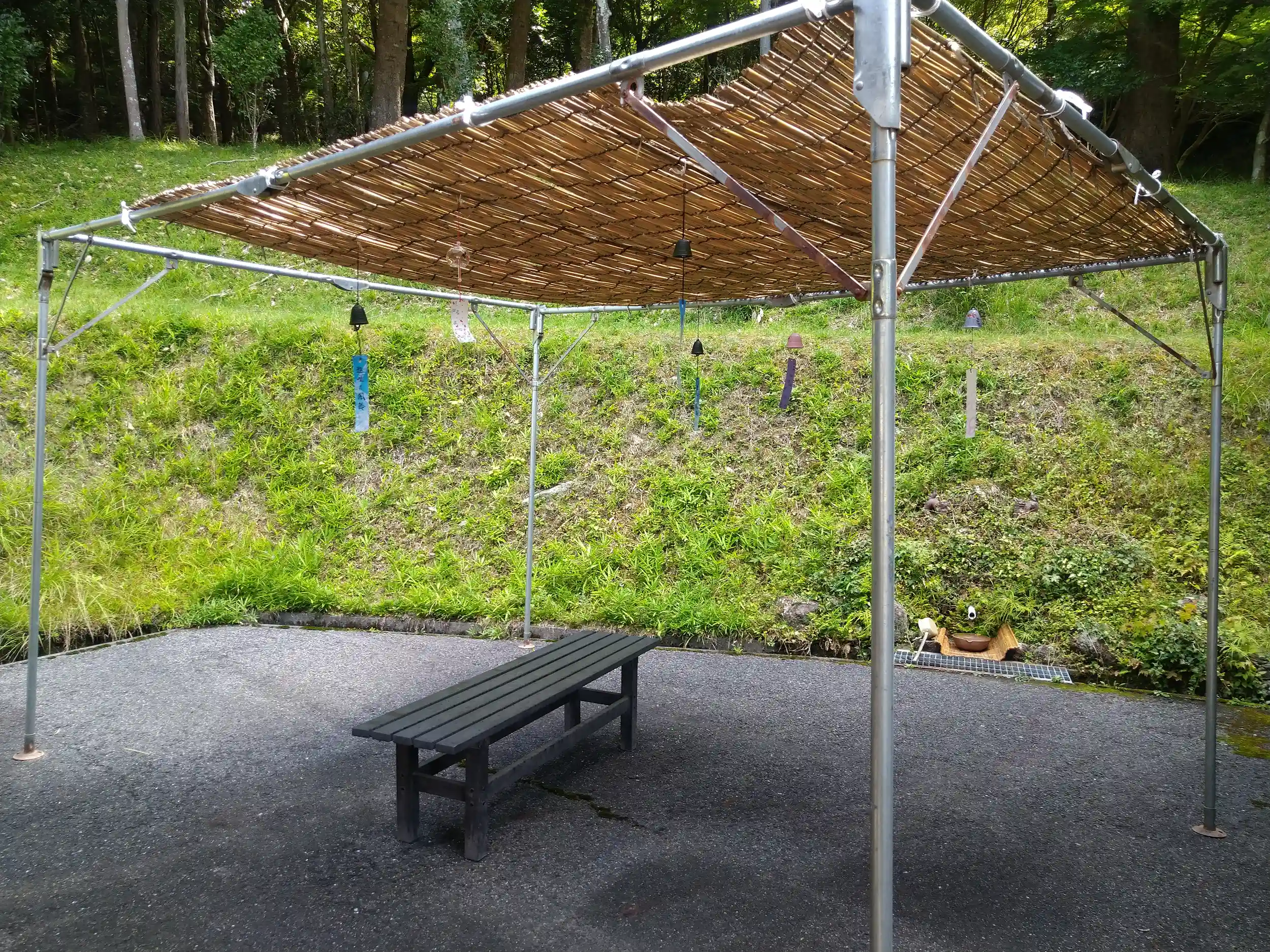 ベンチの上に簾で日陰を作ってくれてます。