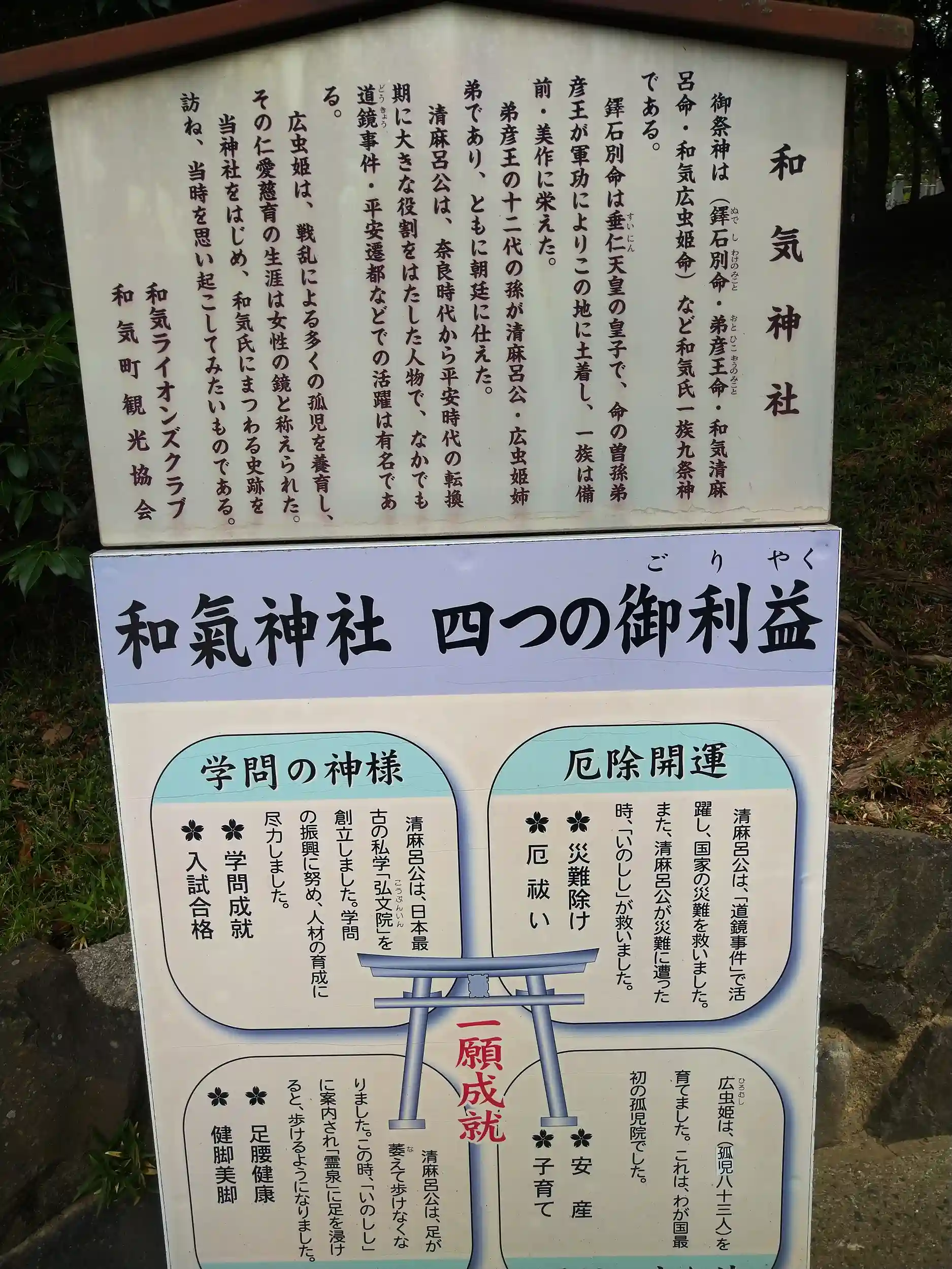 和氣神社の案内看板を見ると…