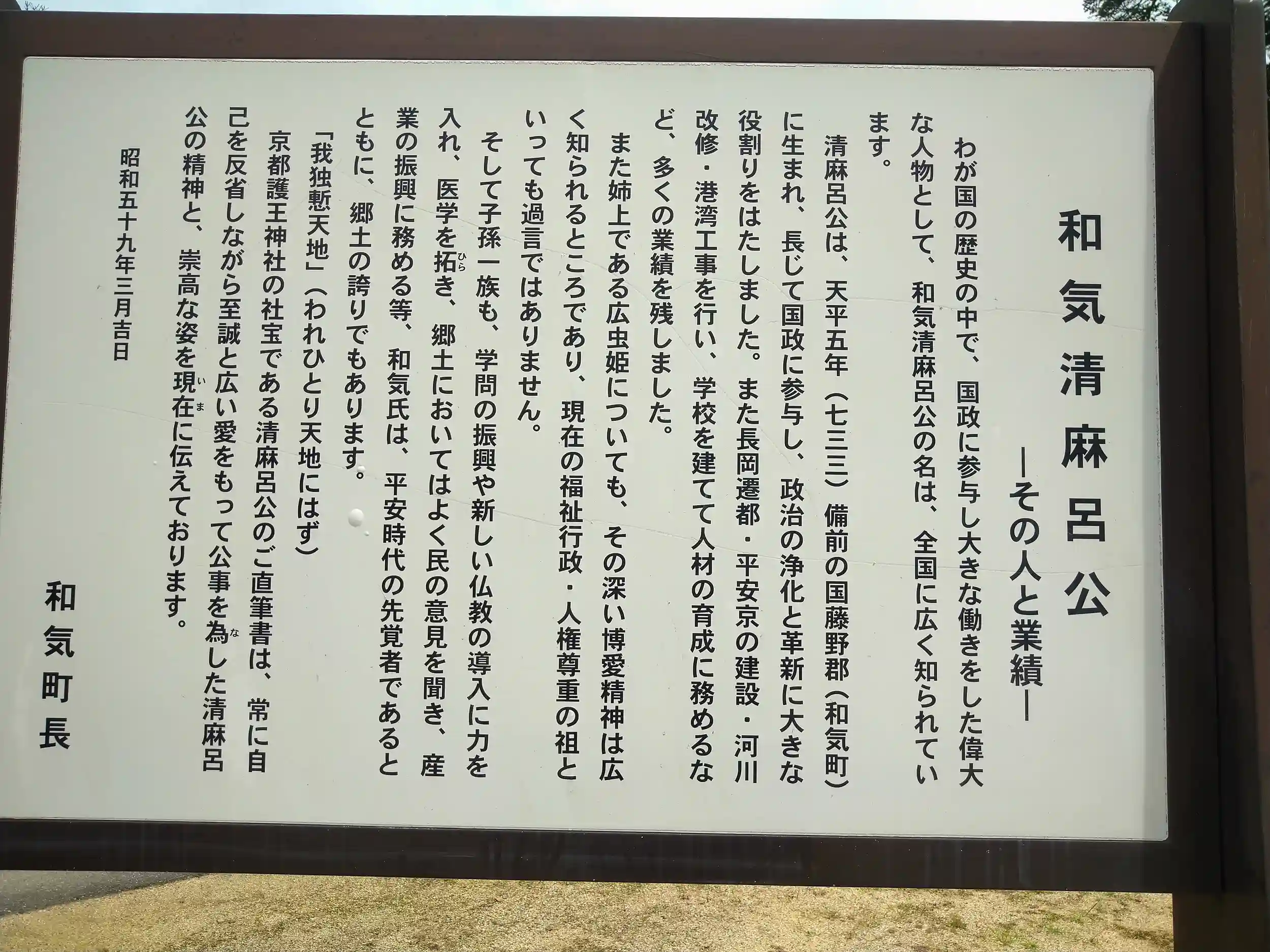 和気清麻呂公〜その人と業績〜の看板
