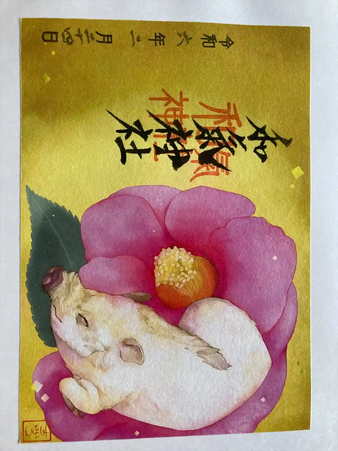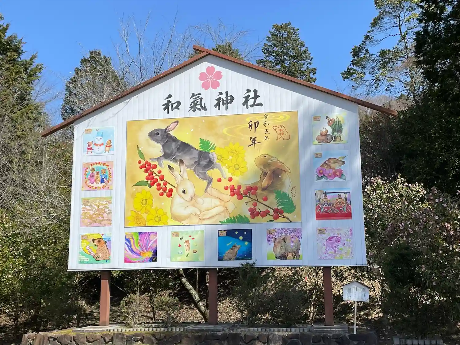 今年のうさぎ絵馬と、周りを囲んでるのは、昨年のすいいろさんの御朱印作品です。