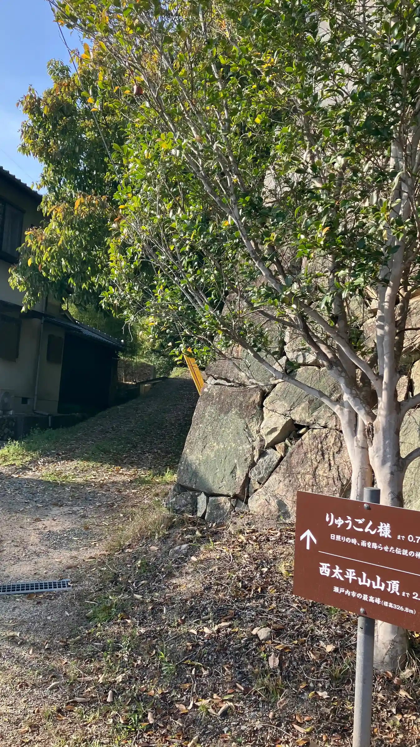 湯次神社の横道から登ることおよそ15分、山の頂上に鎮座するりゅうごん様にお参りできました。道のりは…
