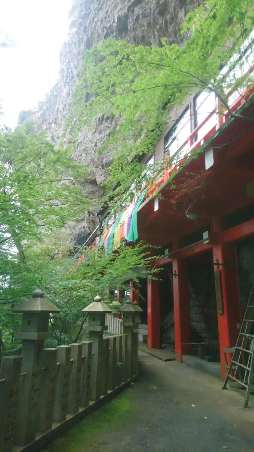 絶壁の中腹にへばりついたお寺。