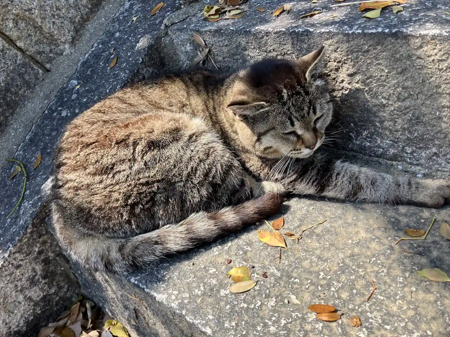 この階段には猫たちがのんびりと寝ている。