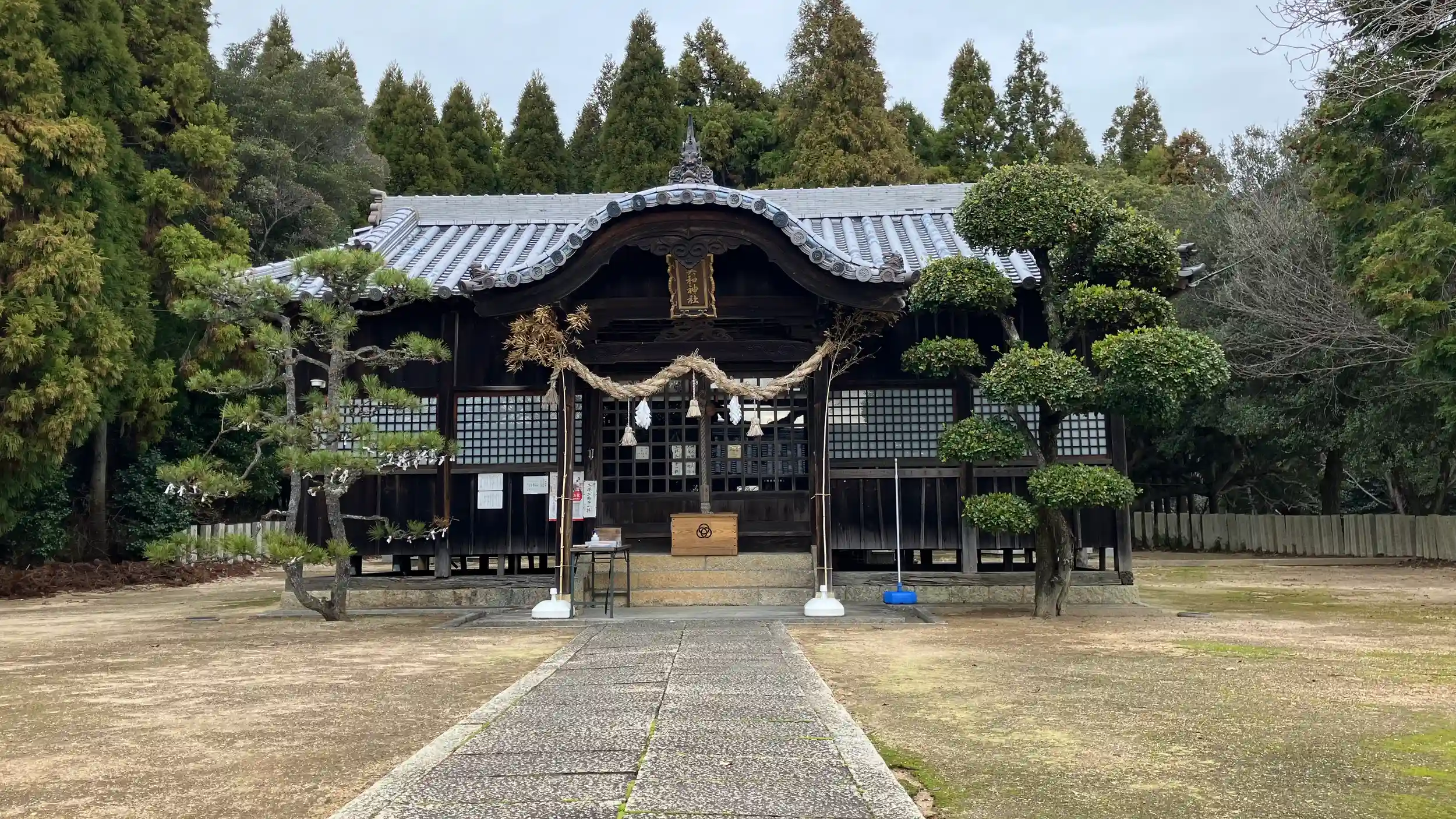 景色が素敵な美和神社にお参りできました。ご鎮座の場所は標高166メートルの広高山の山頂です。随神門を前に振り返った景色は山頂からの穏やかな絶景でした。遠くには瀬戸内海、小豆島、屋島、四国連山が臨めます。清々しい空気に何度も深呼吸したくなります。拝殿も本殿も立派です。本殿の真後ろにあたる場所には杉林があって、太い御神木もあります。この辺りは清々しさもひとしおで、もう一度手を合わせたくなります。少し離れた場所にある鳥居はとても古い様相で、素敵でワクワクします。両脇には立派な備前焼の狛犬がお守りしていました。素敵な美和神社。大好きになりました。また来ます。