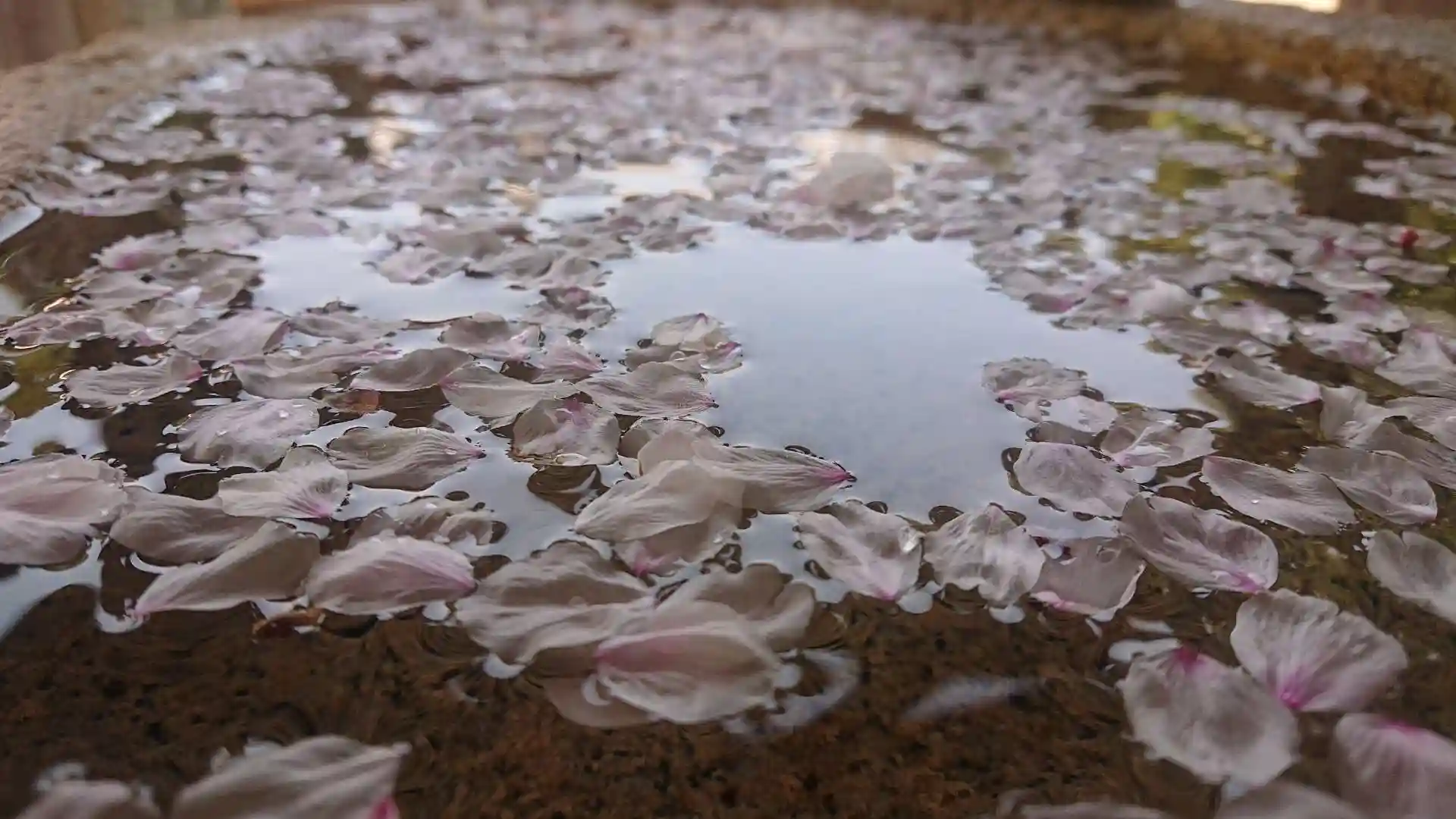 宮司さん考案。手水に今年最後の桜の花びらを、、、みなさんに送ってほしい。と。