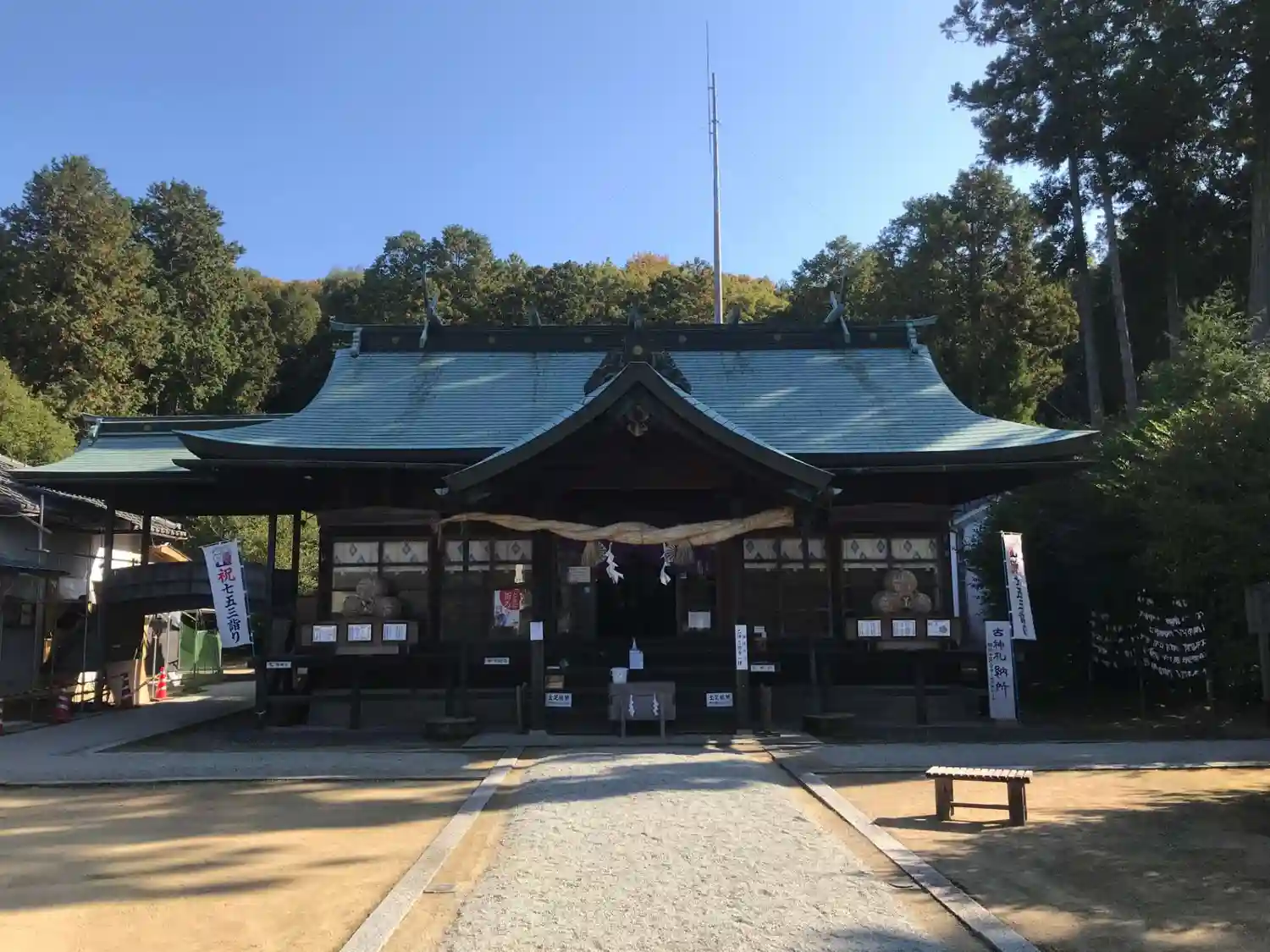 安仁神社、とっても素敵な神社でした。杉の木々に守られるように、どっしりと鎮座していました。拝殿にも…