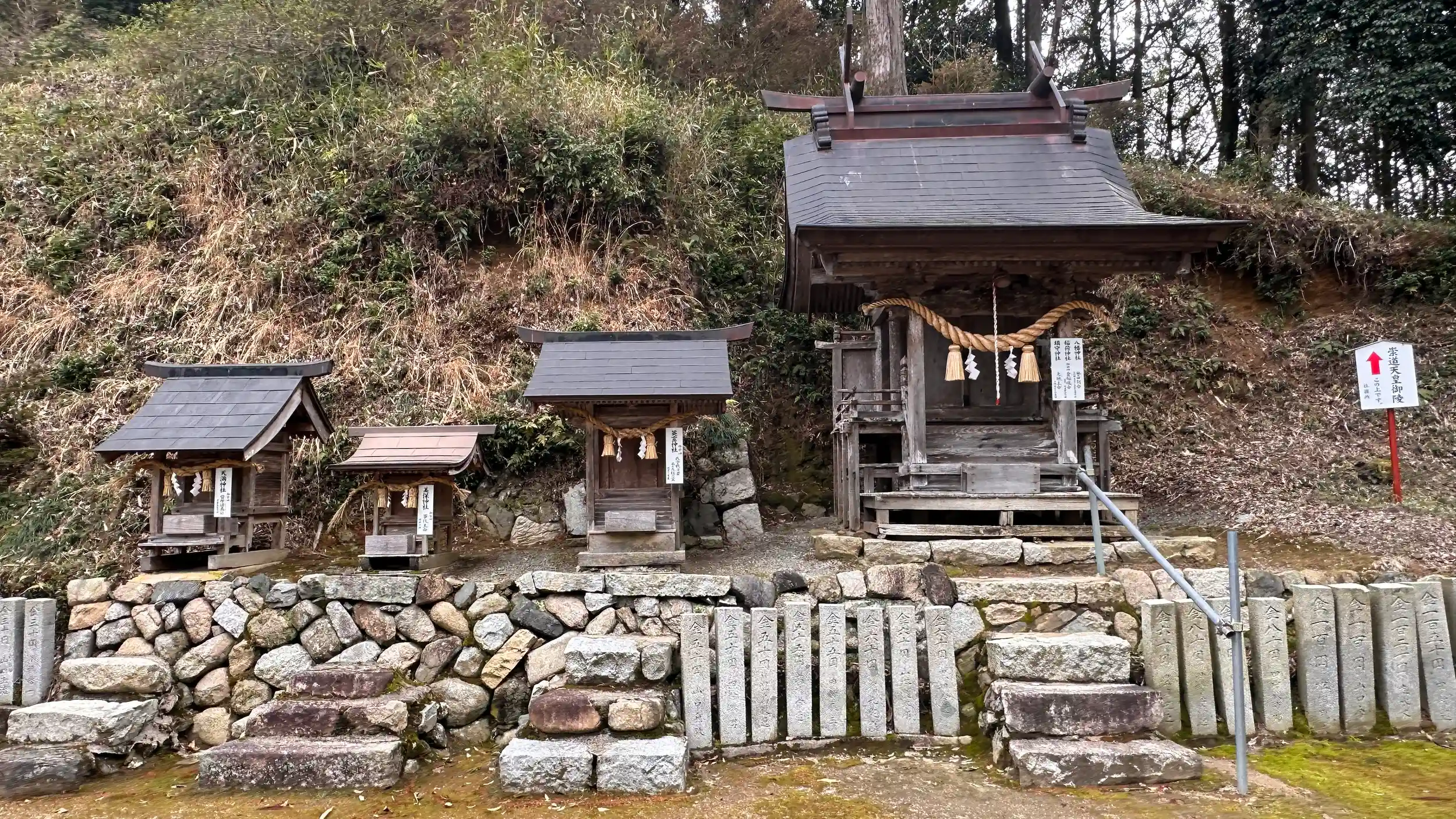 境内より少し上には、崇道天皇(早良親王)の御陵があります、本殿は流造 菊の御門が入っています。末社も沢山あり、八幡神社、御先神社、美保神社、英霊神社、養老神社、若宮神社、天満神社