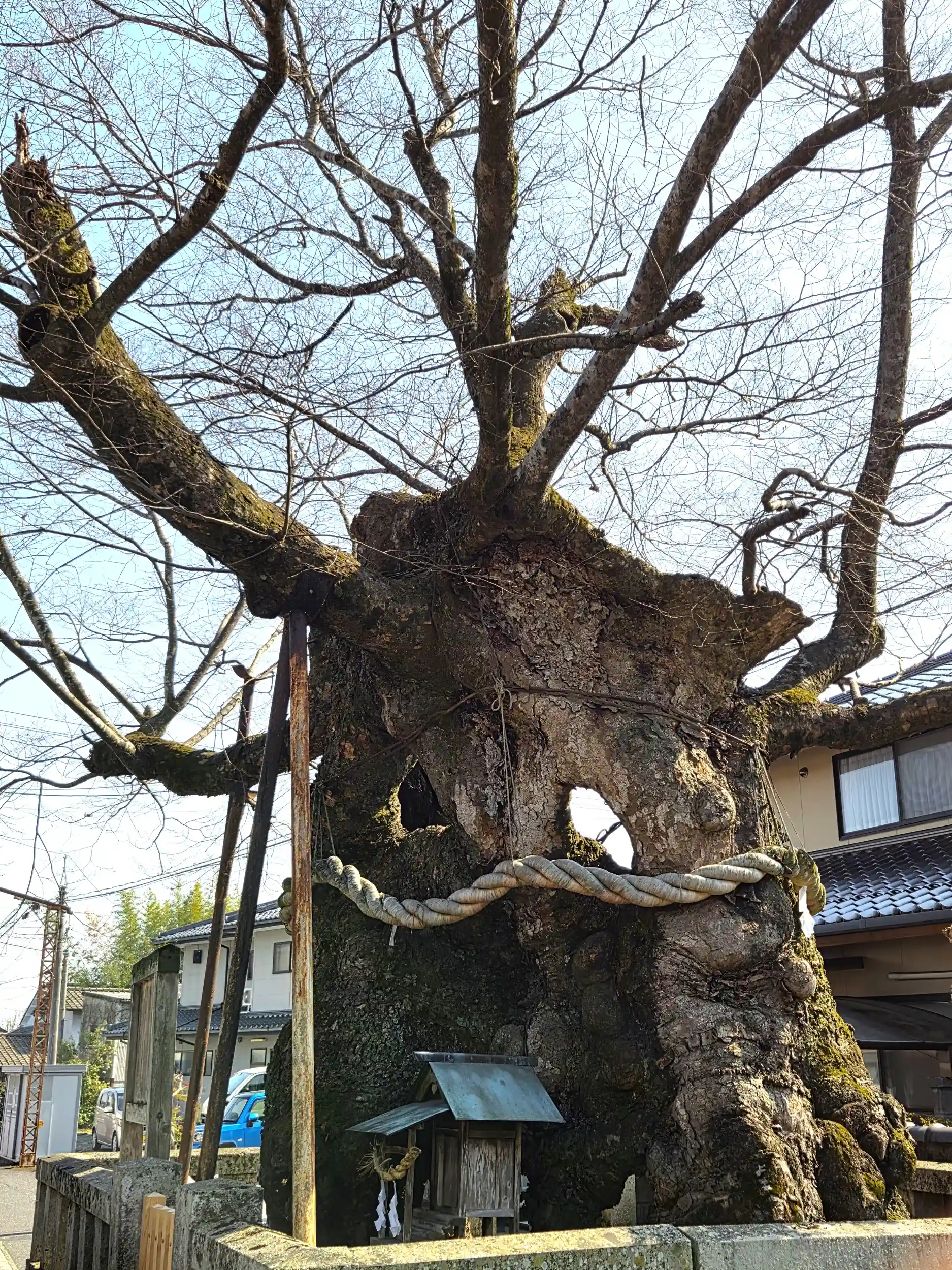 まず鳥居前の参道にある樹齢800年以上の御神木。
