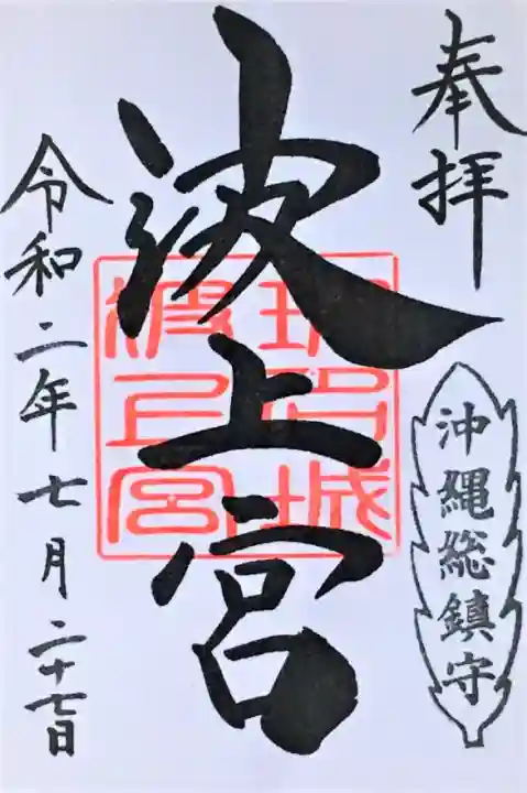 真ん中に「波上宮」と墨書きされ、「玻名城波上宮」印が重ねられています。