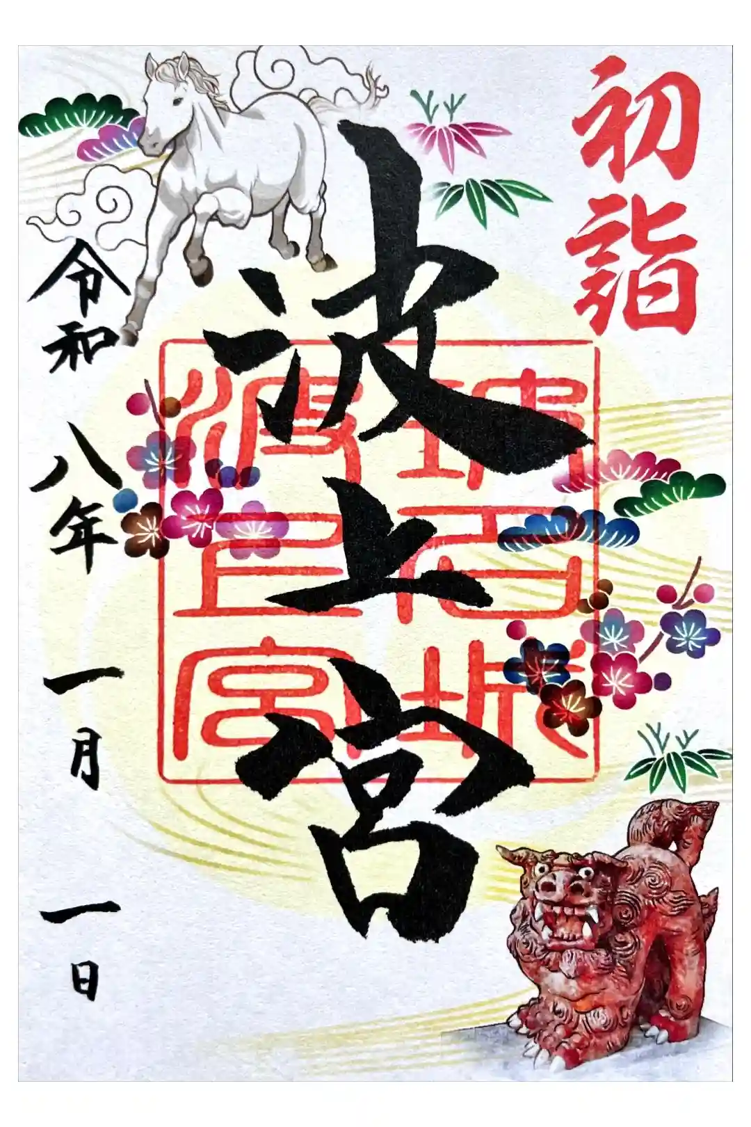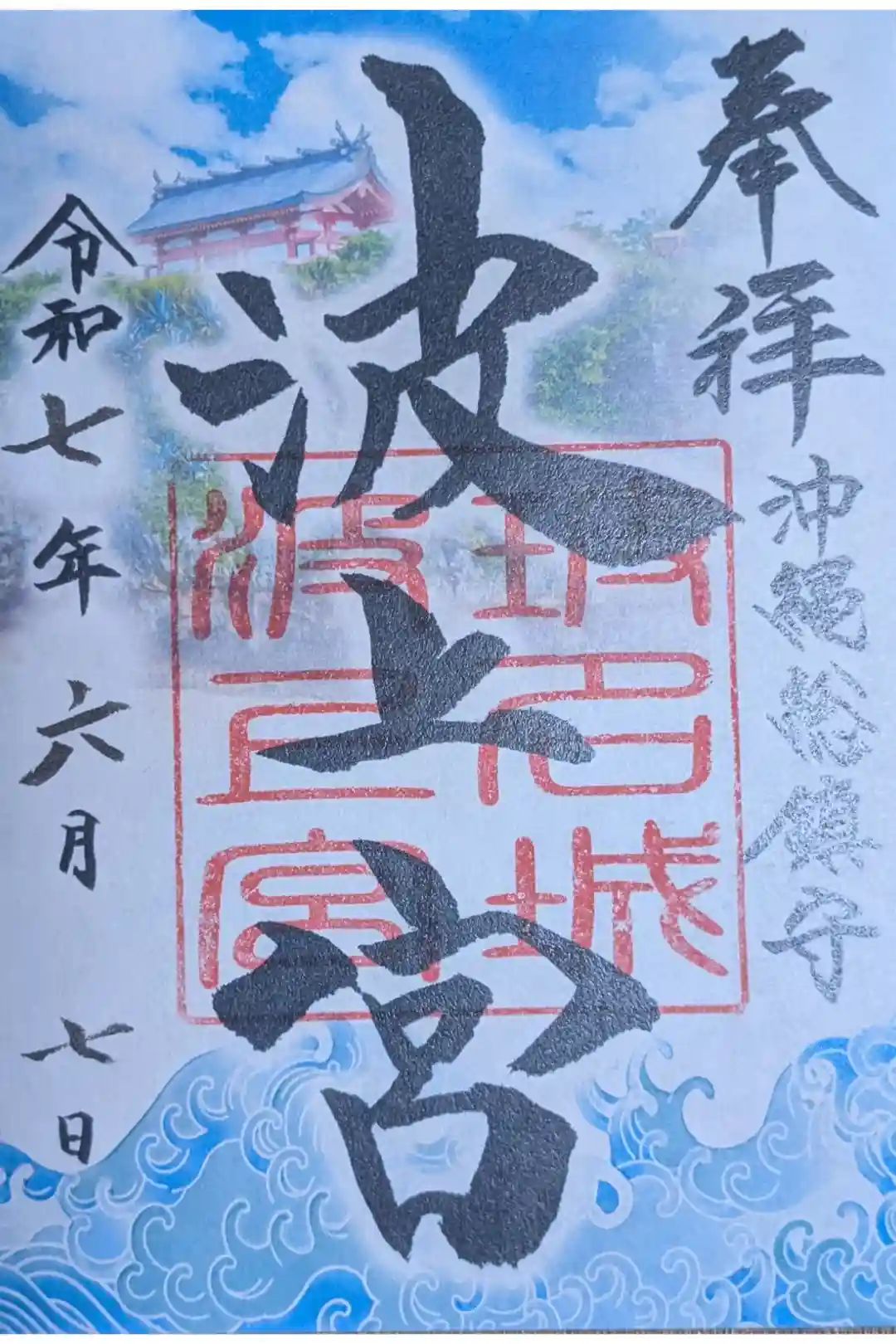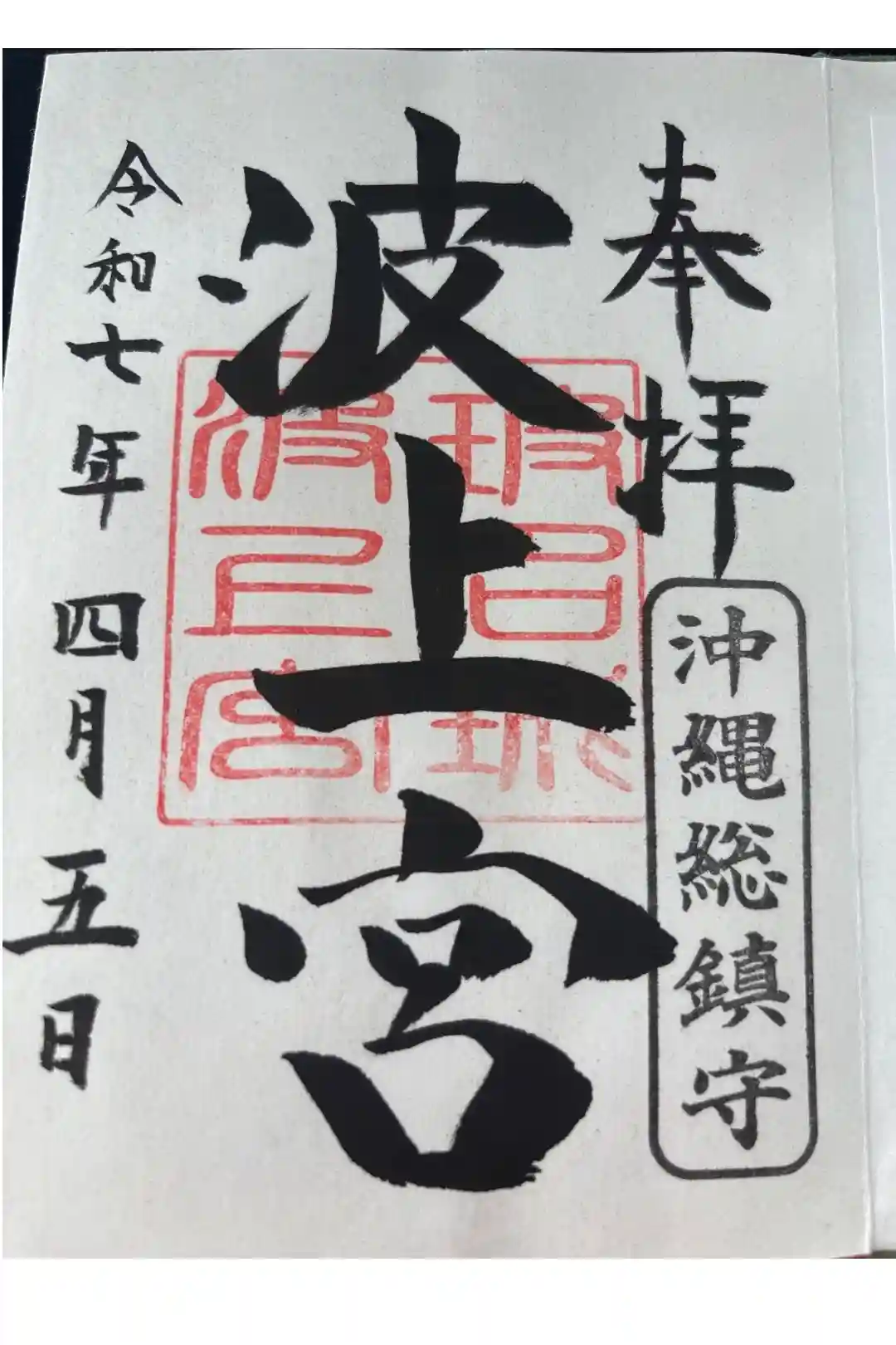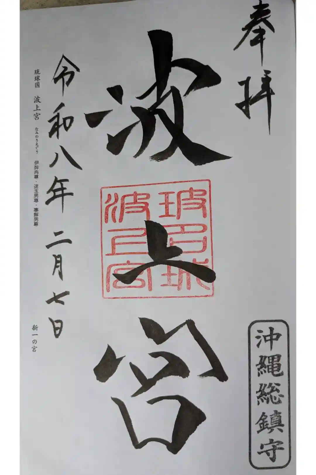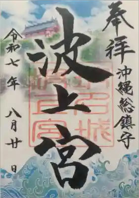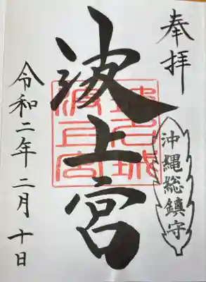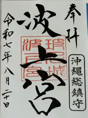 真ん中に「波上宮」と墨書きされ、「玻名城波上宮」印が重ねられています。