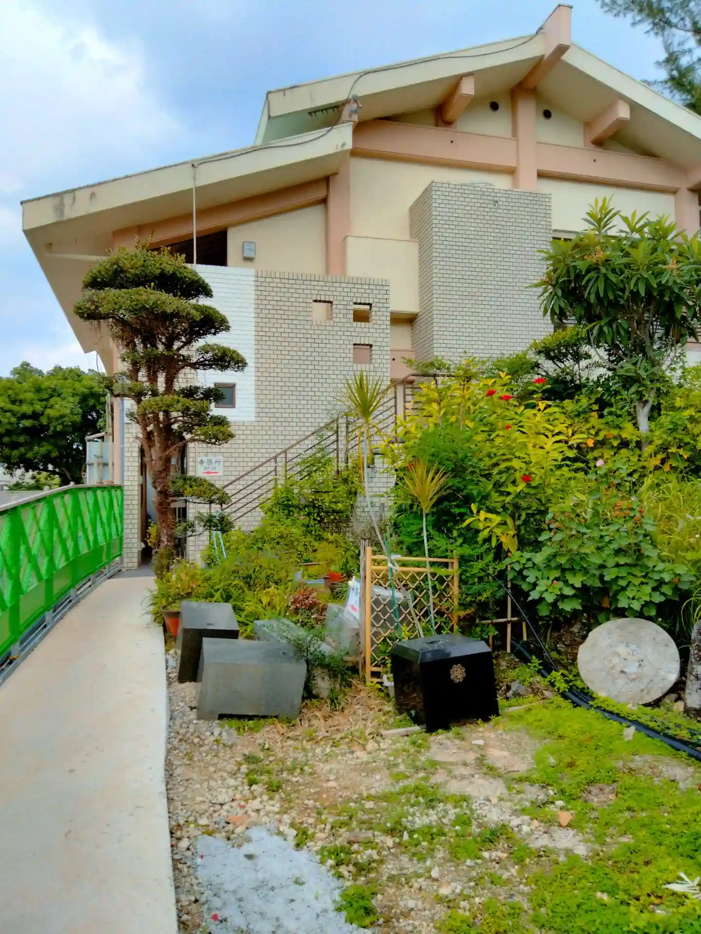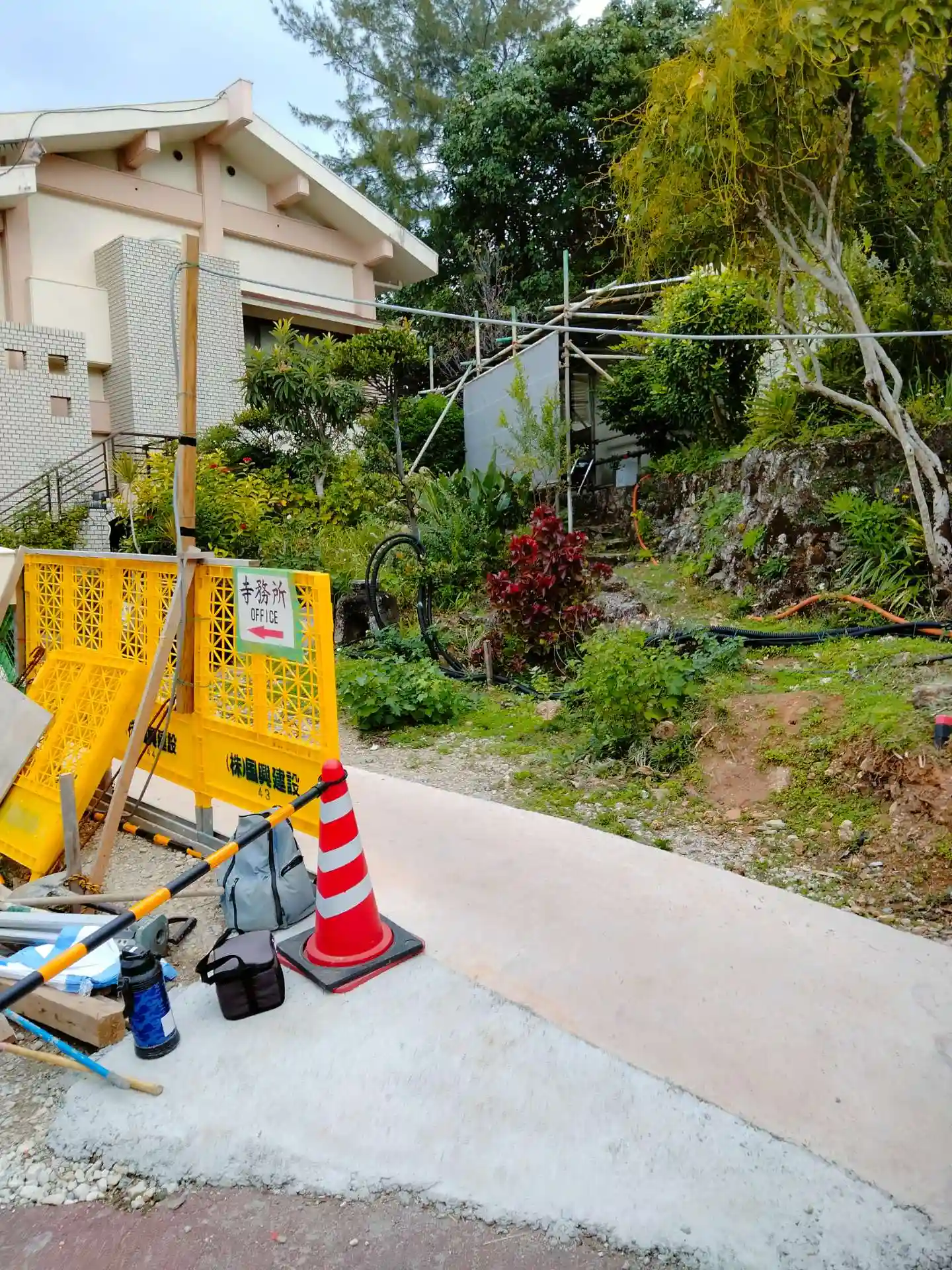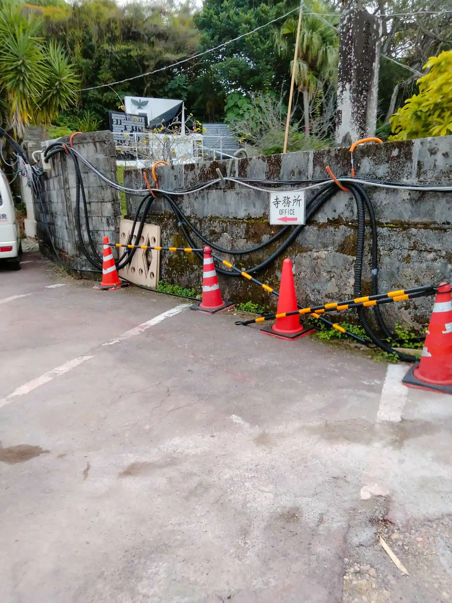 波上宮の隣にあります、専用駐車場があるようですが、本堂を建て替えている最中で使用できませんでした、仮本堂で参拝しました。