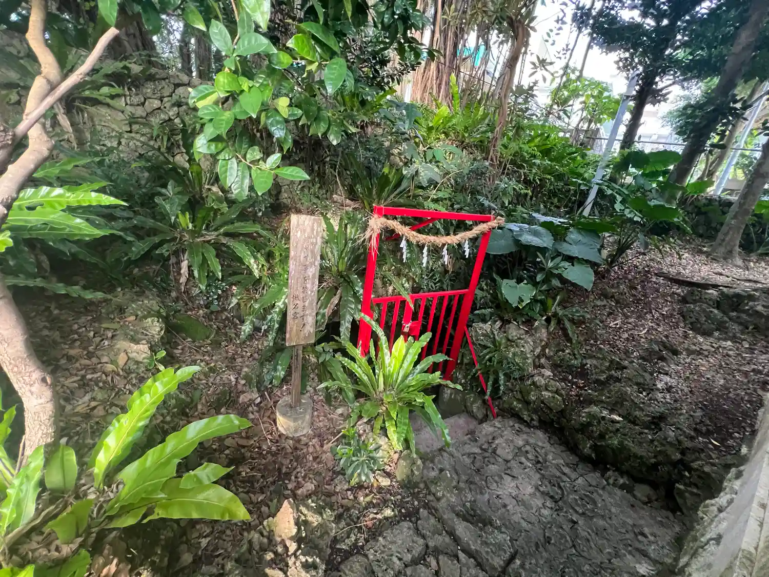 参道は細いが、亜熱帯系樹木に覆われていて包まれ感がある。