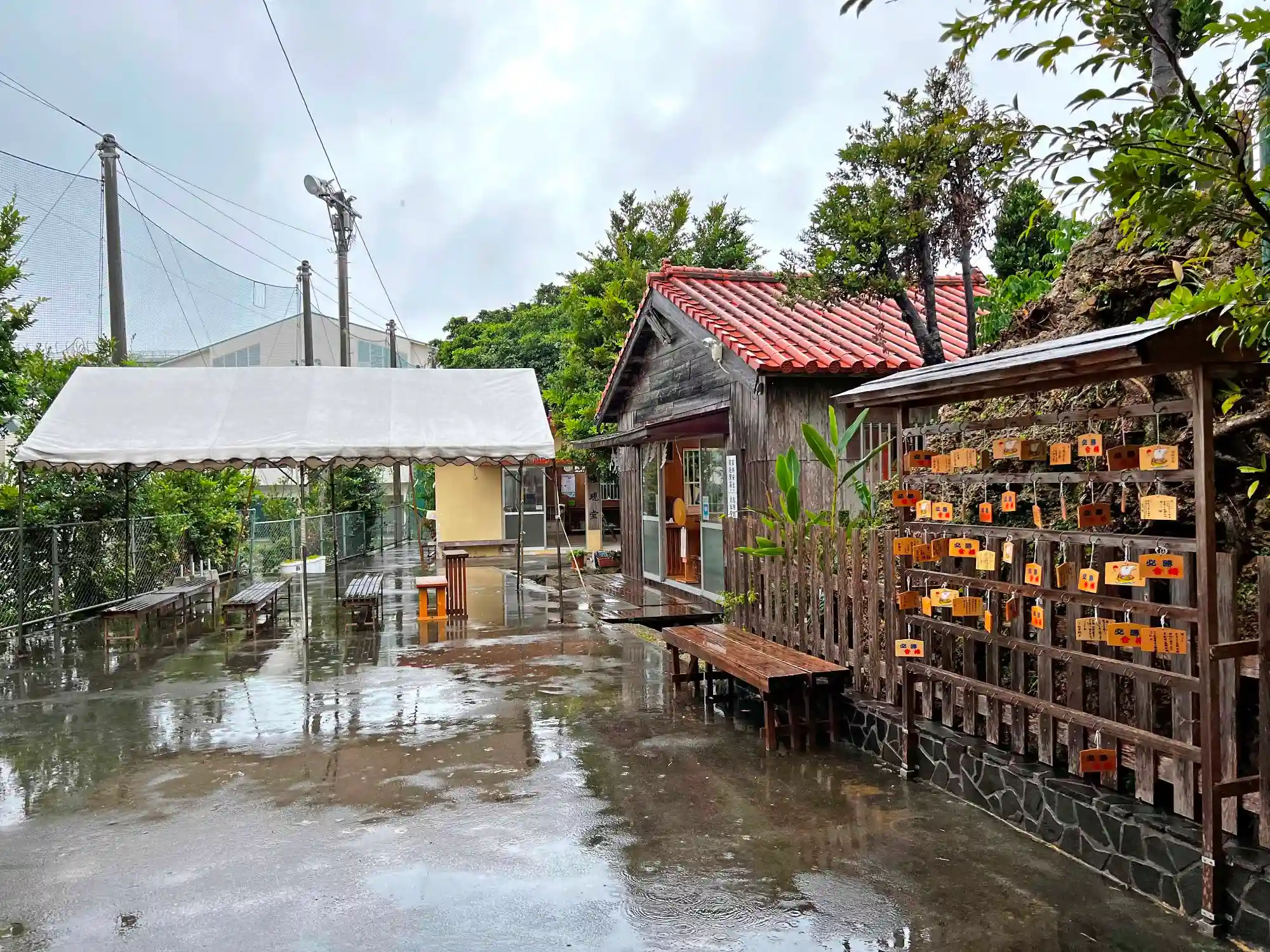 今回は、琉球八社の1社であることから参拝することに。参拝時は休日の午後で、土砂降りの雨だったにもかかわらず、自分以外にも何組も参拝者がいた。
