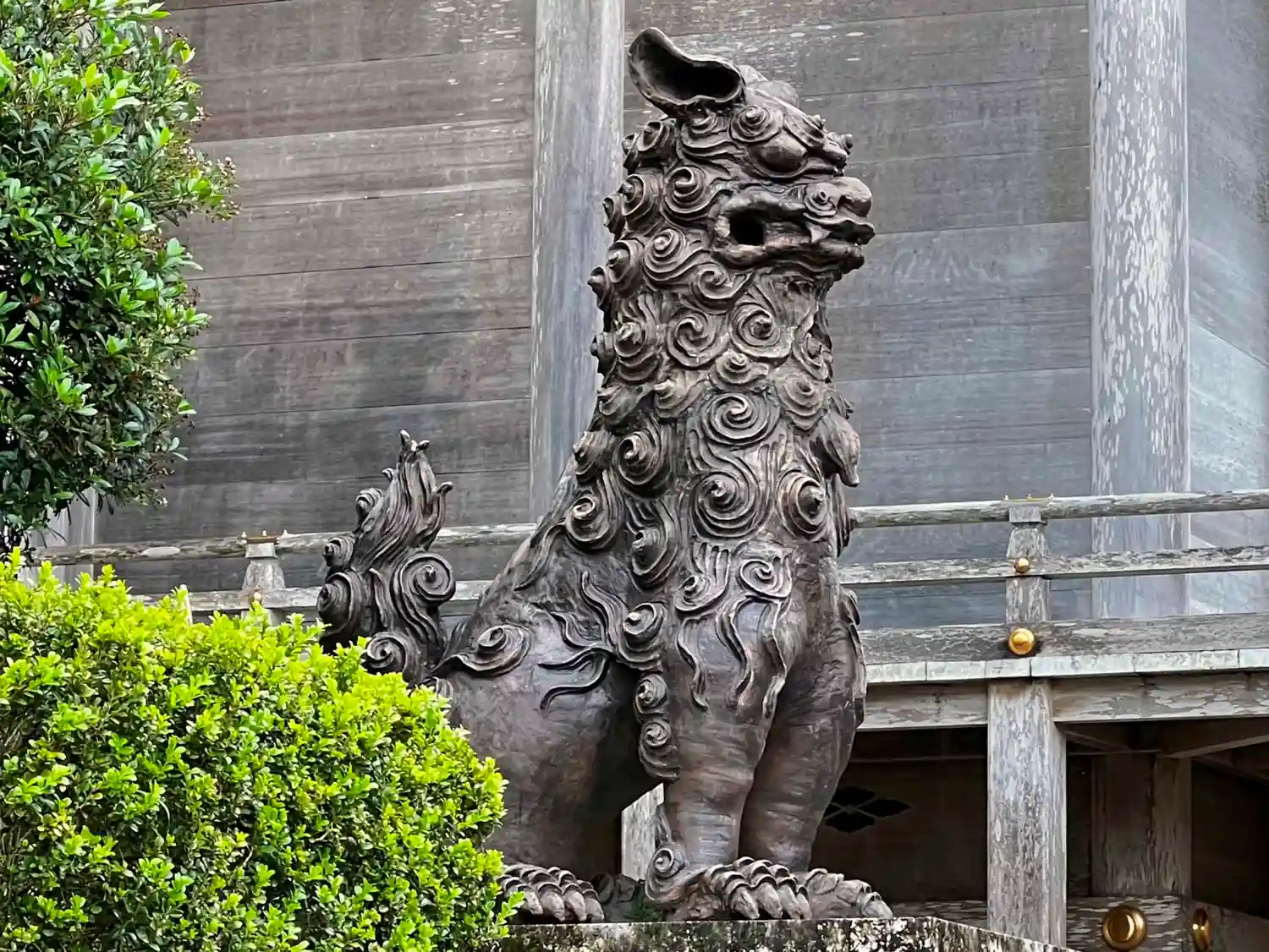 本殿脇の<狛犬>。今までに見た沖縄の狛犬の中で最も凛々しいかも。