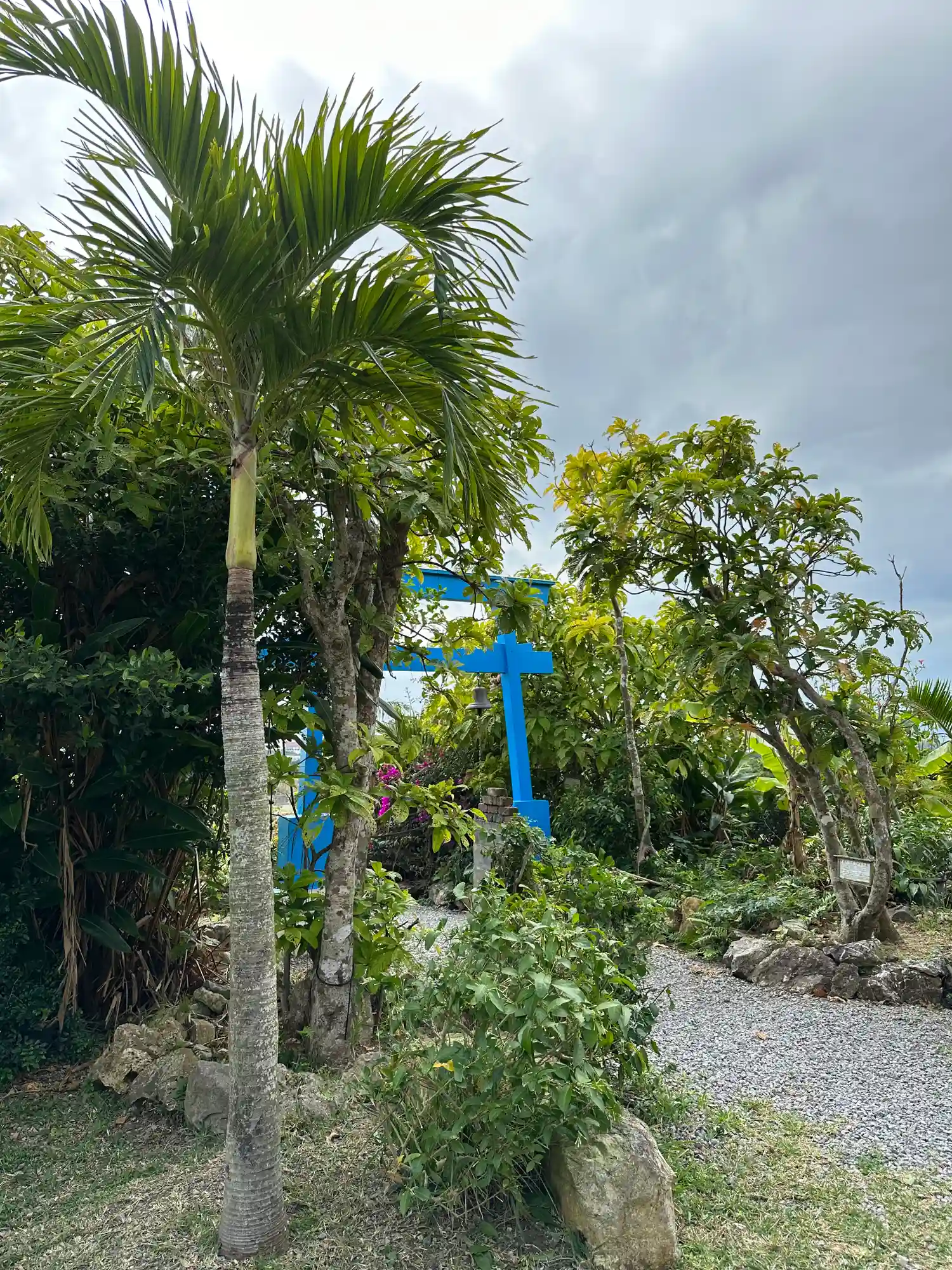 南国感たっぷりの珍しい青の鳥居があります。