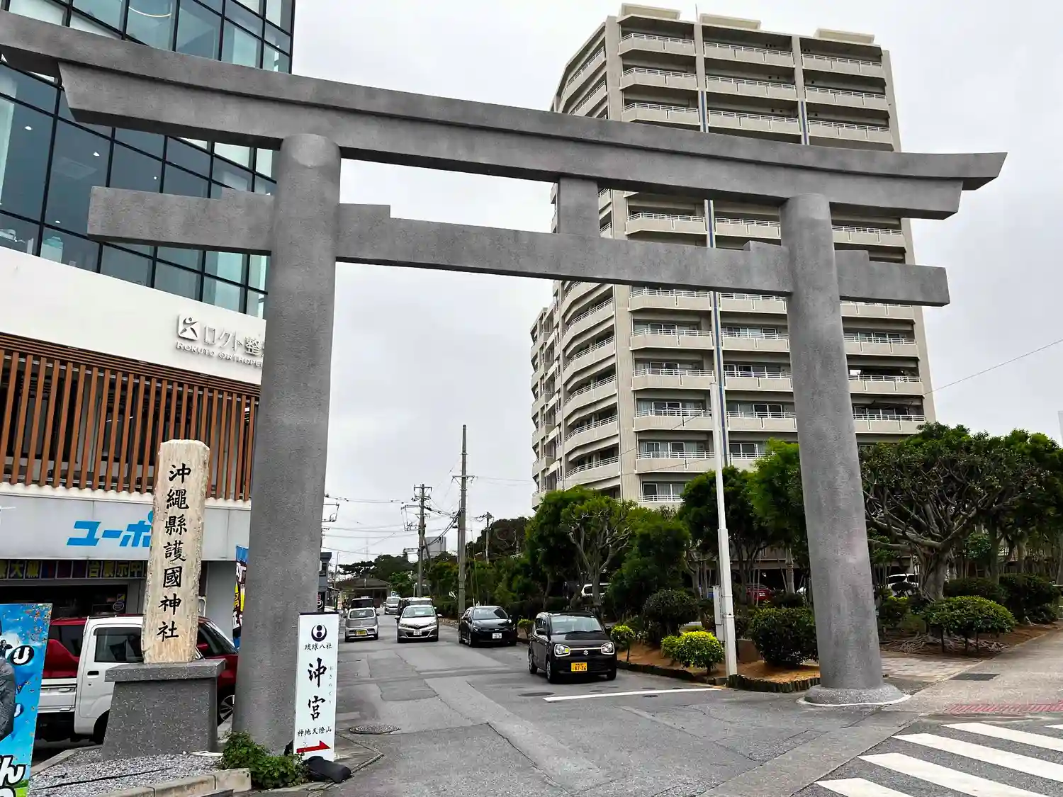 車で沖宮に行く場合には、奥武山公園北側の<沖縄県護国神社・一の鳥居>から入っていく。(^▽^)/