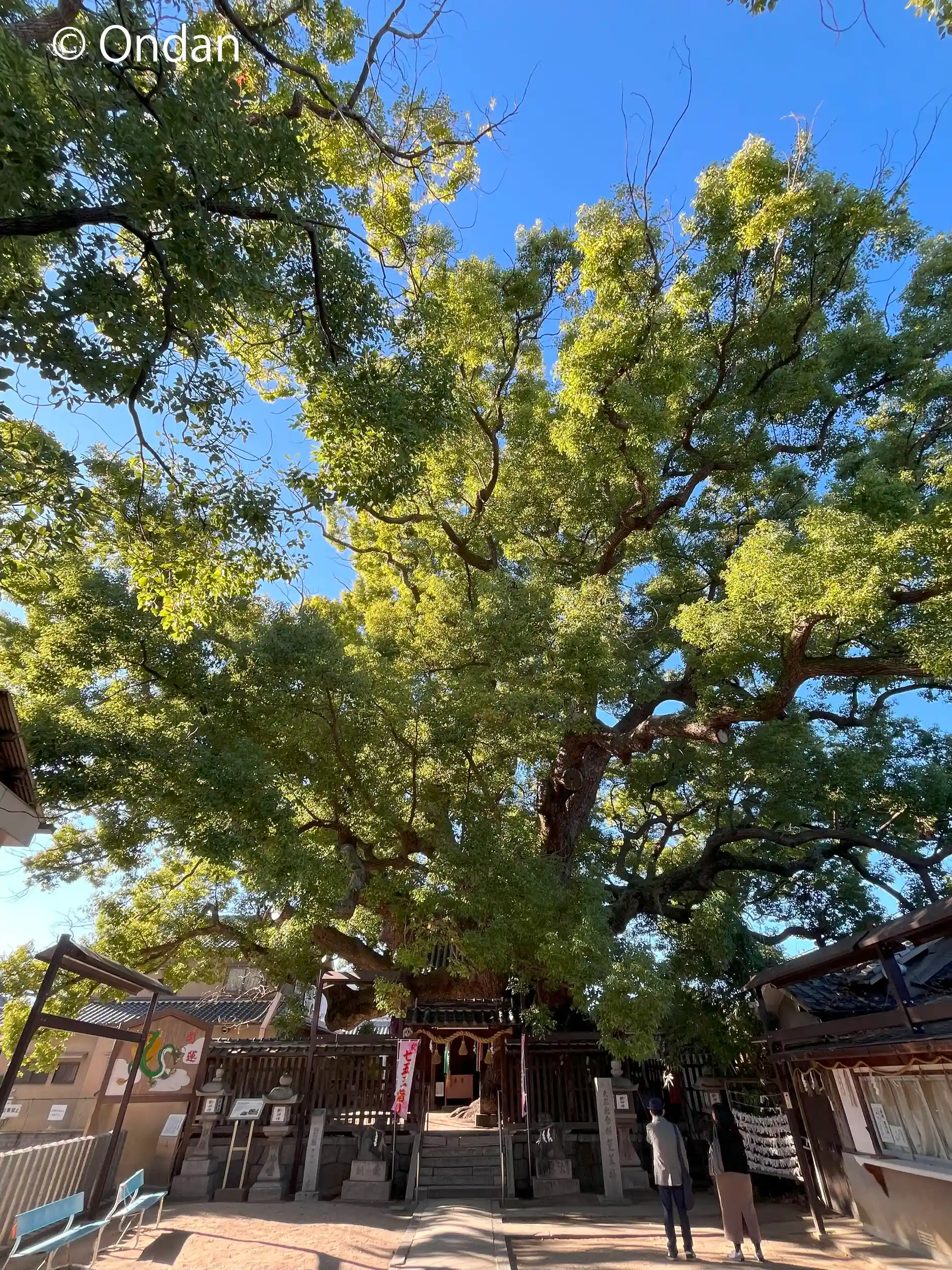 まずは三島神社。小さな山王宮神社ですが、なんといっても「薫蓋樟」(くんがいしょう)。大楠です。幹回り13m、枝張り33m、樹齢約1000年という天然記念物。