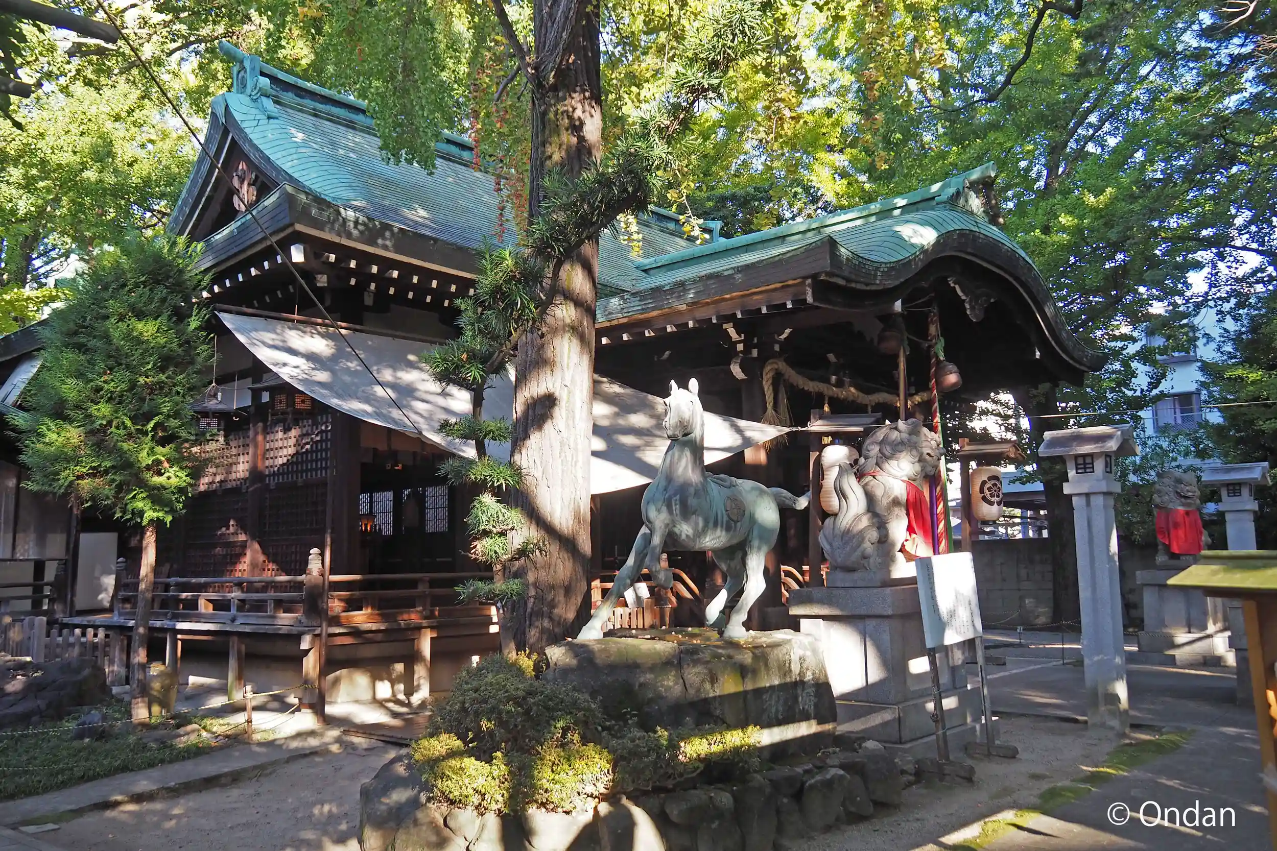 鎮座は918年と伝わります。今は商店街に面して残っています。
