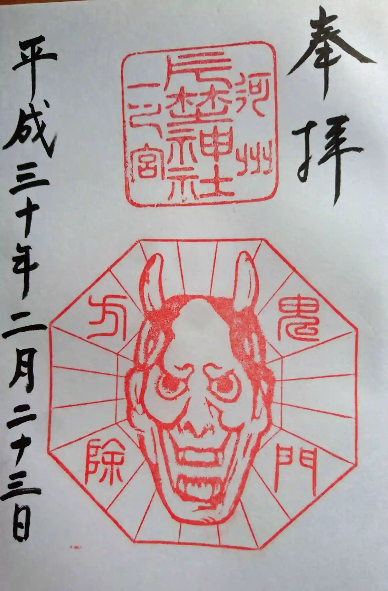 御朱印が面白い鬼面の神社。