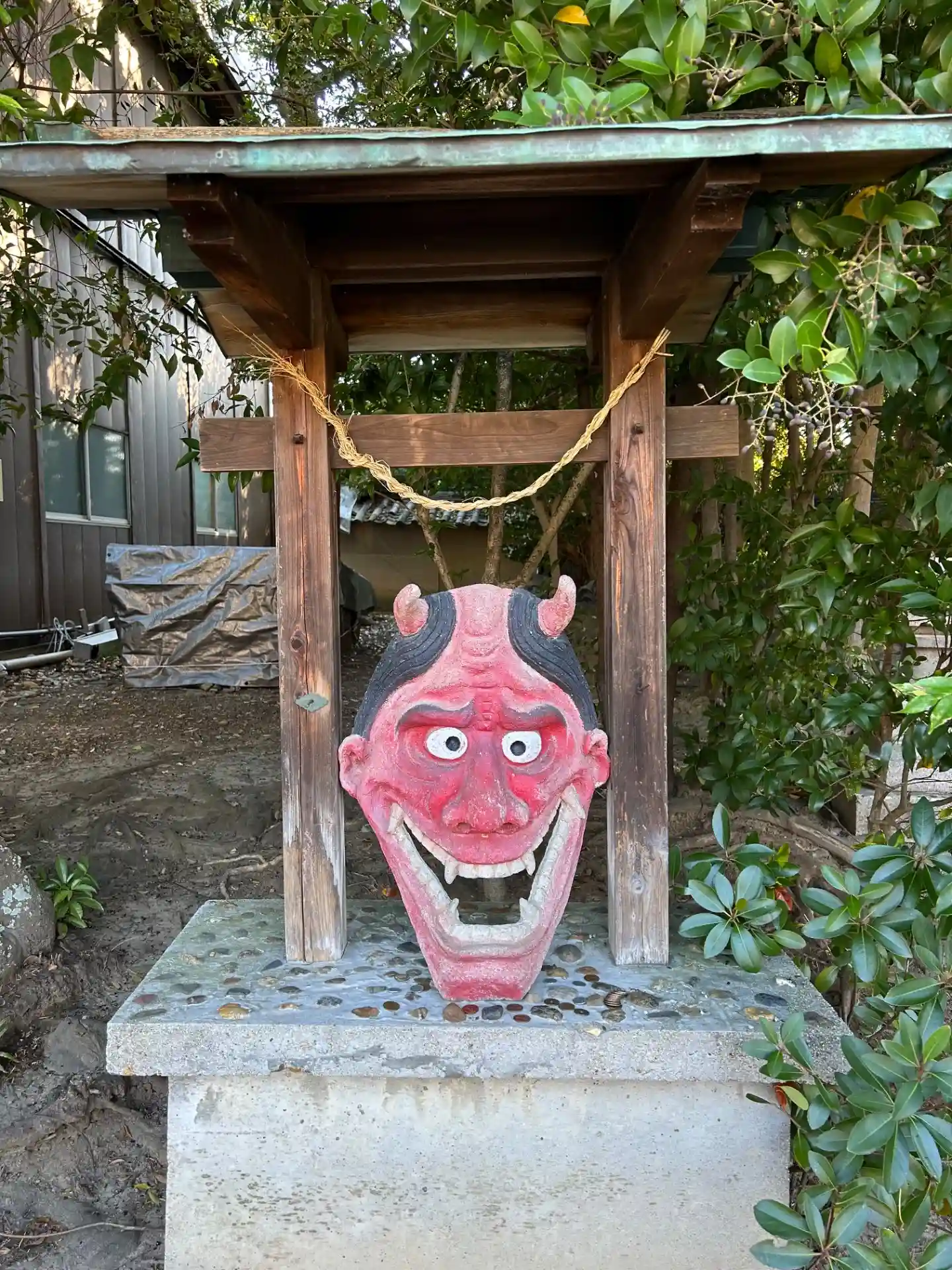 お詣りしてる途中、そう言えばという感じで以前にホトカミの投稿で見た記憶が蘇りました。境内には鬼の面…