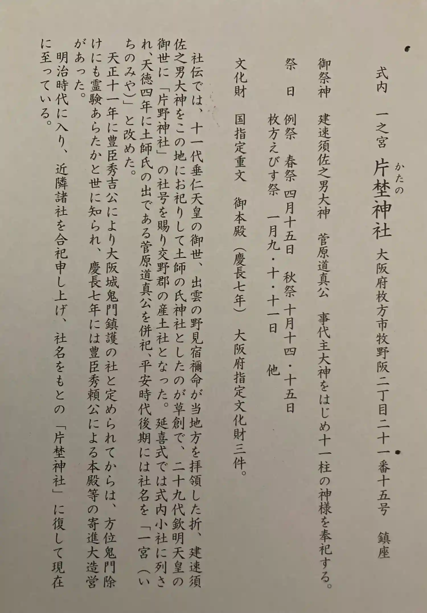 片埜神社 河内一ノ宮(?)
