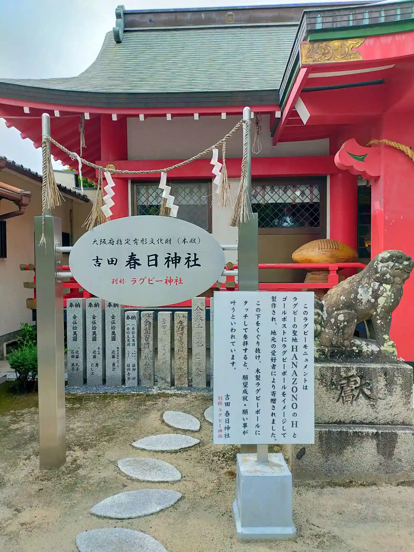 安楽寺さん近隣です。ラグビー神社で有名な、吉田春日神社さんです。木製のラグビー🏉も奉納されています。御祭神は、天児屋根大神、比売大神、武甕槌大神、経津主大神です。境内にある、塞之神社さんは、歯神さんと言われています。又、狛犬さんの尻尾が個性的です。