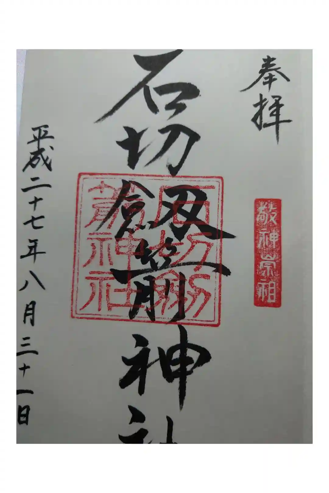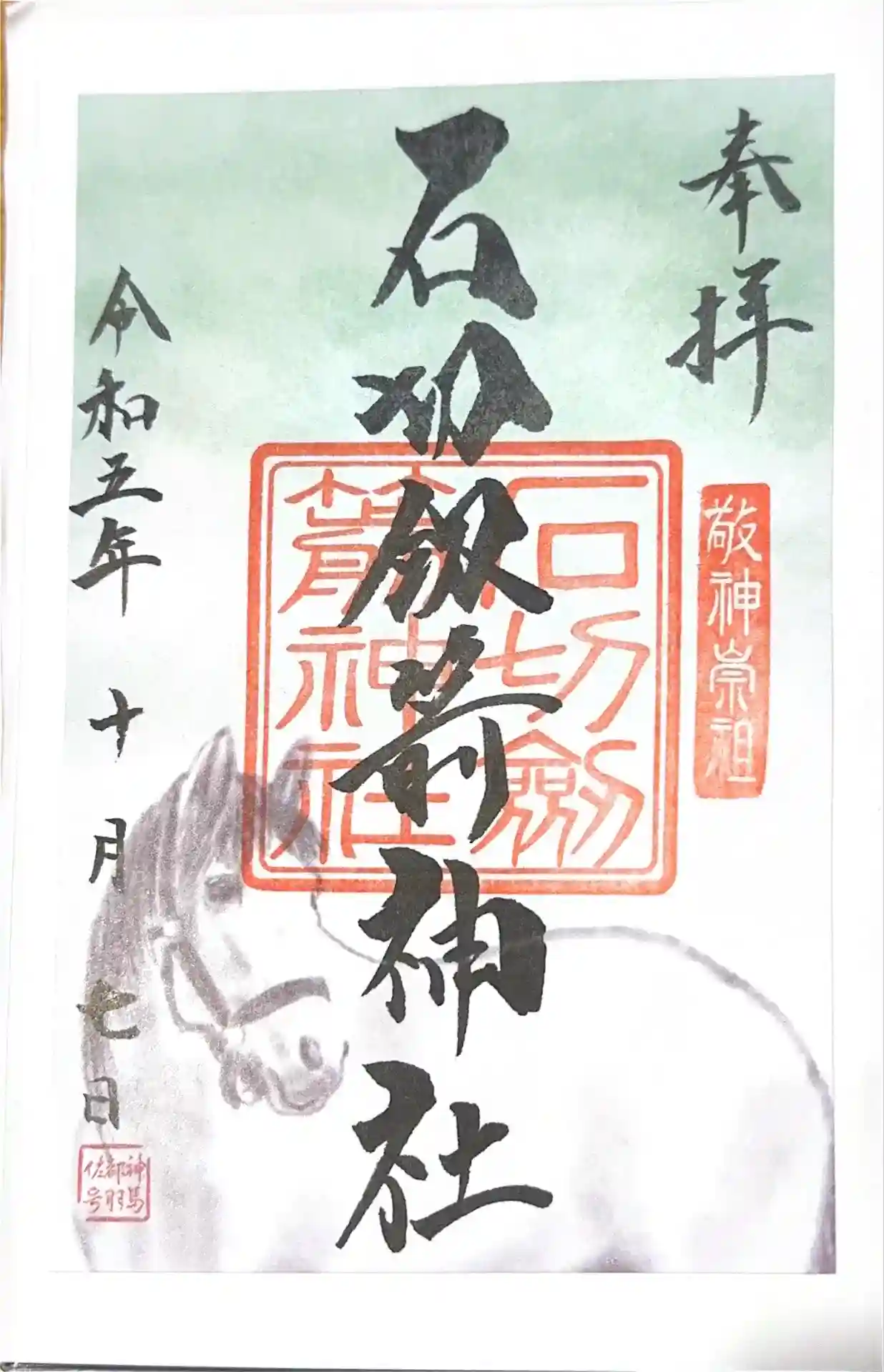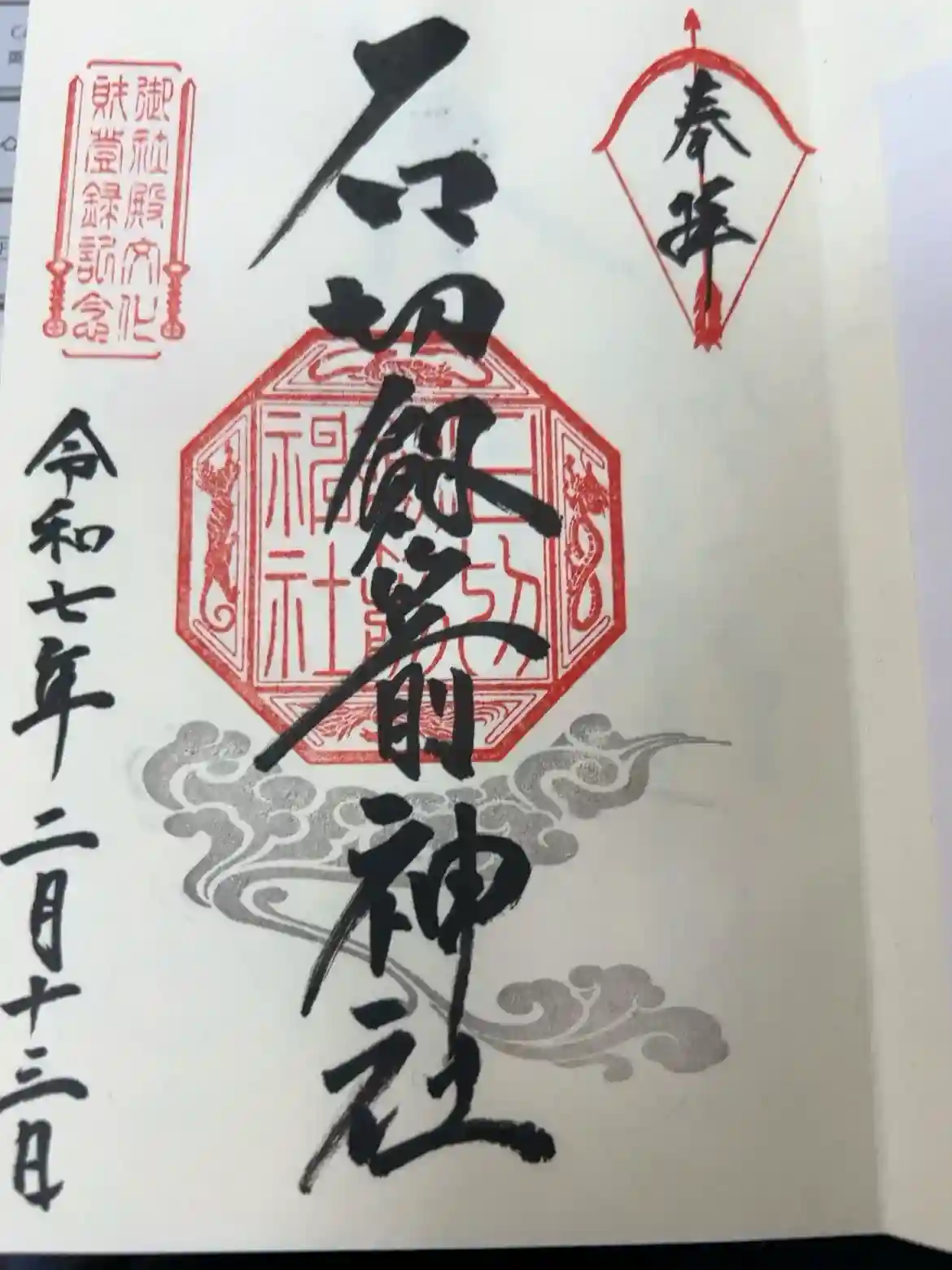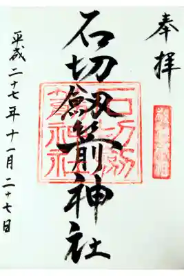 真ん中に「石切劔箭神社」と墨書きされ、神社印が重ねられています。