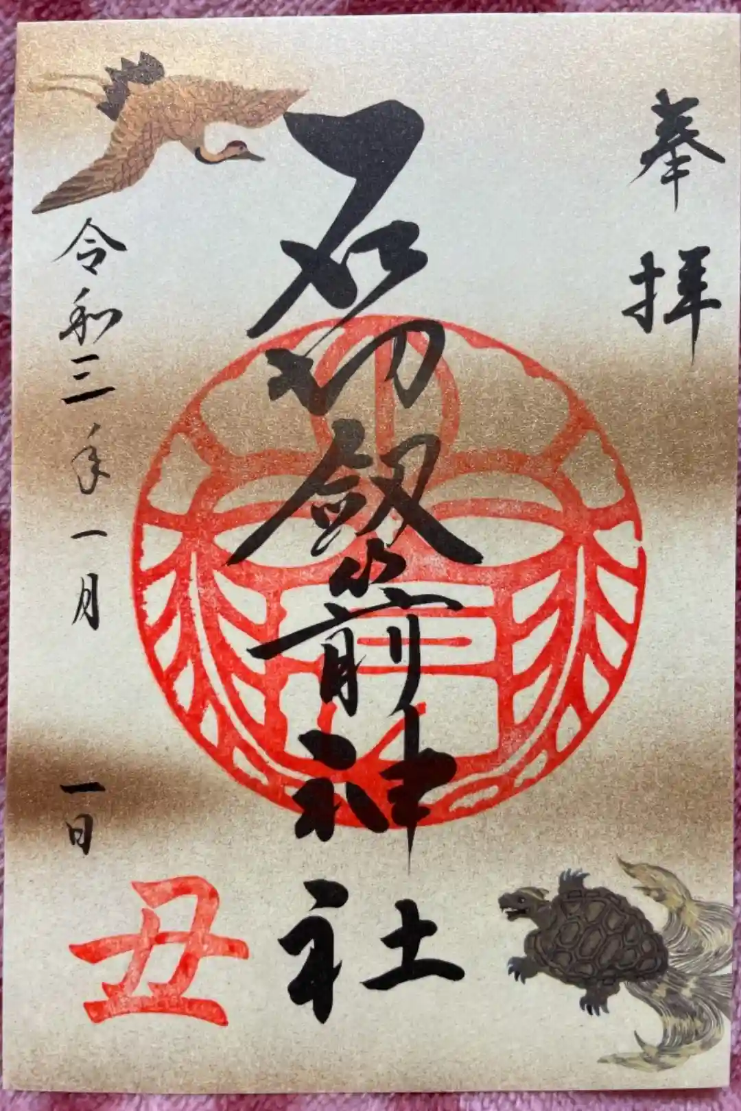 お正月限定の御朱印です。節分まで授与されます。